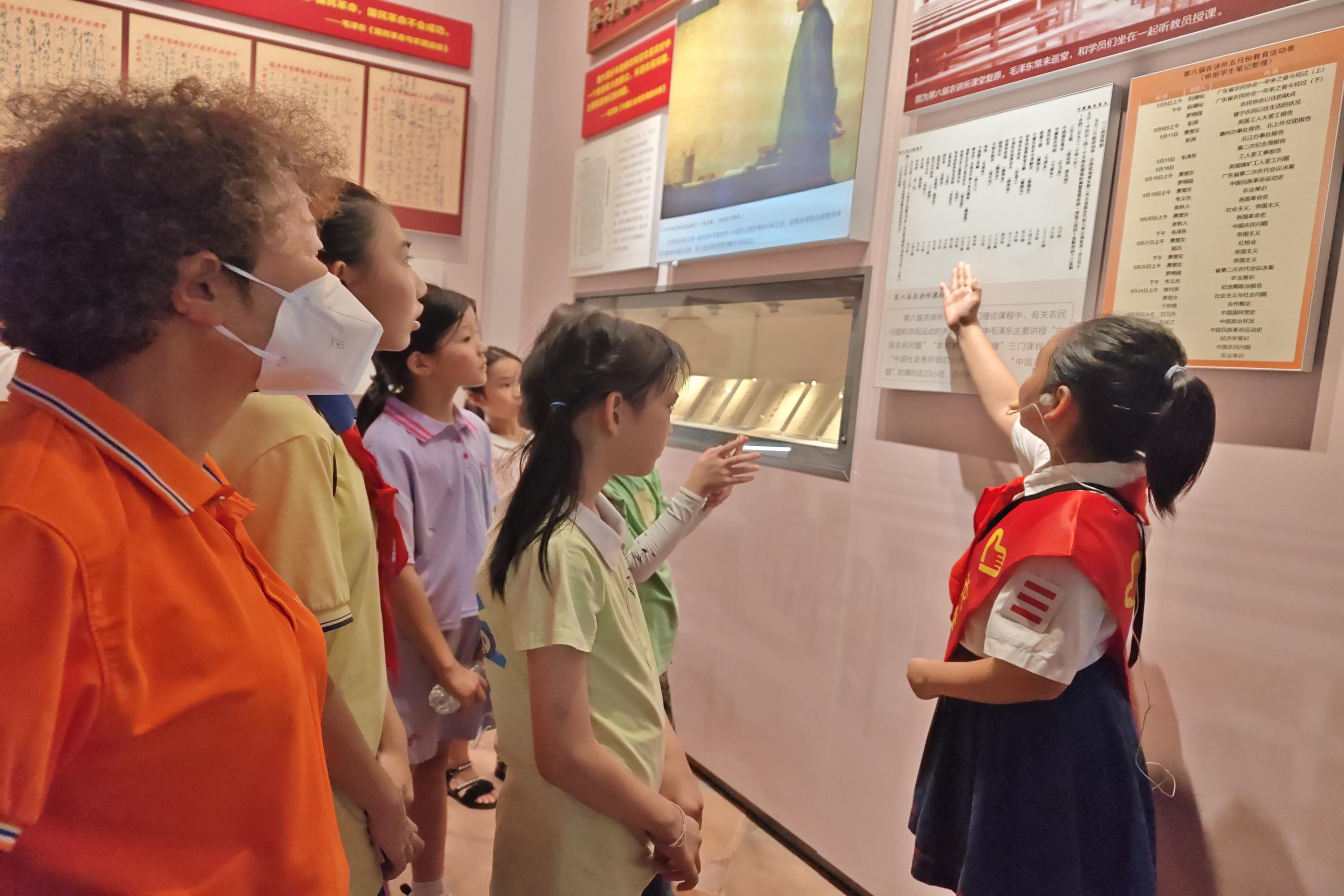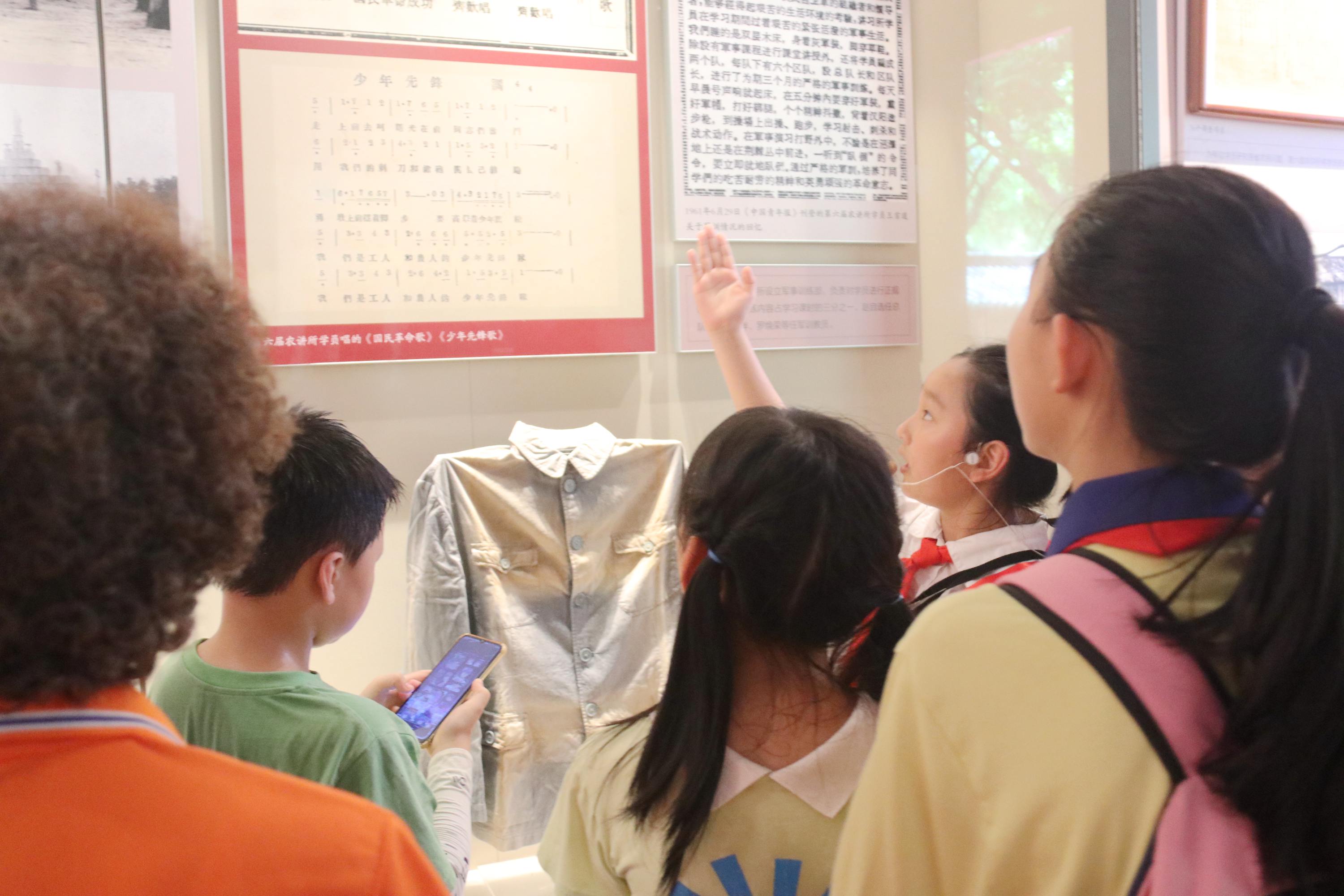 此外,游学队伍在游览中途遇到了小小讲解员,在小小讲解员的带领下,家长及小朋友们驻足在《国民革命歌》文物之下,用耳熟能详的“两只老虎”曲调唱出了激情昂扬的国民革命歌,让家长及儿童们在歌声中深刻地感受到了革命先烈的伟大情怀和崇高精神。