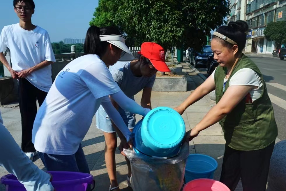 在湘江祁阳沿江路河段,实践团与祁阳河小青志愿团队一同行动,组织中小学生以及当地居民共30人,共赴净滩之约。大家分工合作,干劲十足,不久便让河岸重现清丽。当天共清理各类垃圾50余桶,并转运到垃圾处理厂进行处理。实践团成员们以实际行动践行绿色理念,展现青春担当,共同守护一江碧水。