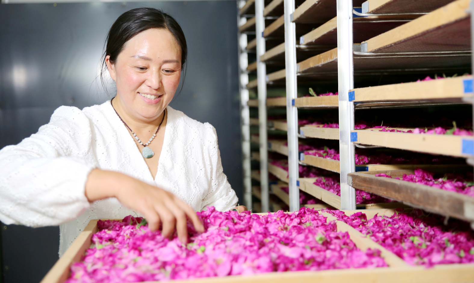 刘楼乡陈庄村群众在晾晒玫瑰花。高会鹏 摄