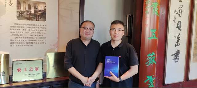 何景峰代表农工党徐州市鼓楼区支部向农工党淮阴工学院支部赠送研究成果《2024淮海经济区核心城市养老事业与产业发展报告》。