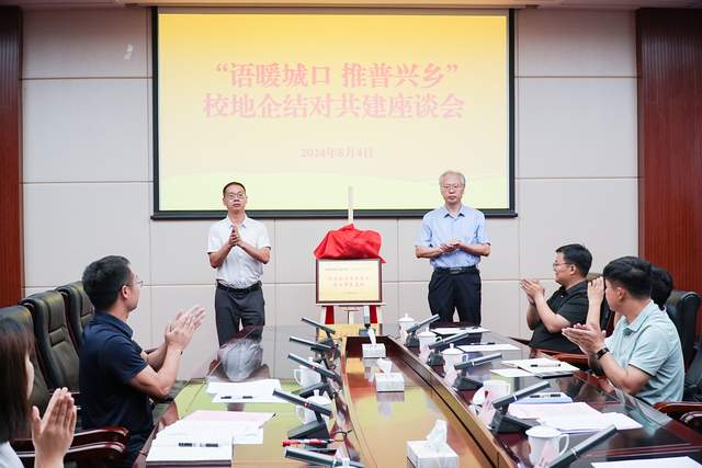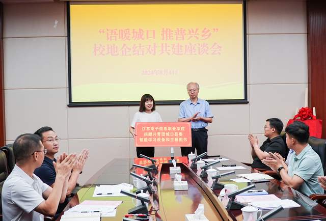 座谈会上还举行了“推普助力乡村振兴”结对帮扶基地揭牌、智能学习设备和主题图书捐赠,签署了校地共青团联学共建协议等。重庆龙工场跨境电商产业服务有限公司、嘉环科技股份有限公司、校党委教师工作部人才办相关负责人围绕产业互联服务、数字城市建设、乡村人才振兴、推普实践等方面介绍情况。