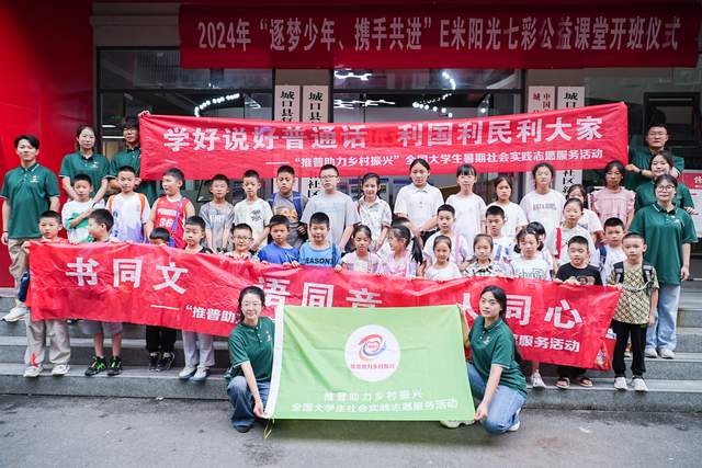 申高青一行走进城口县葛城街道桂花井社区,观看“中国邮政——苏电团团”联名制作的有声明信片展,观摩“艺润童心”互动课堂,为开展推普培训的师生鼓劲加油。