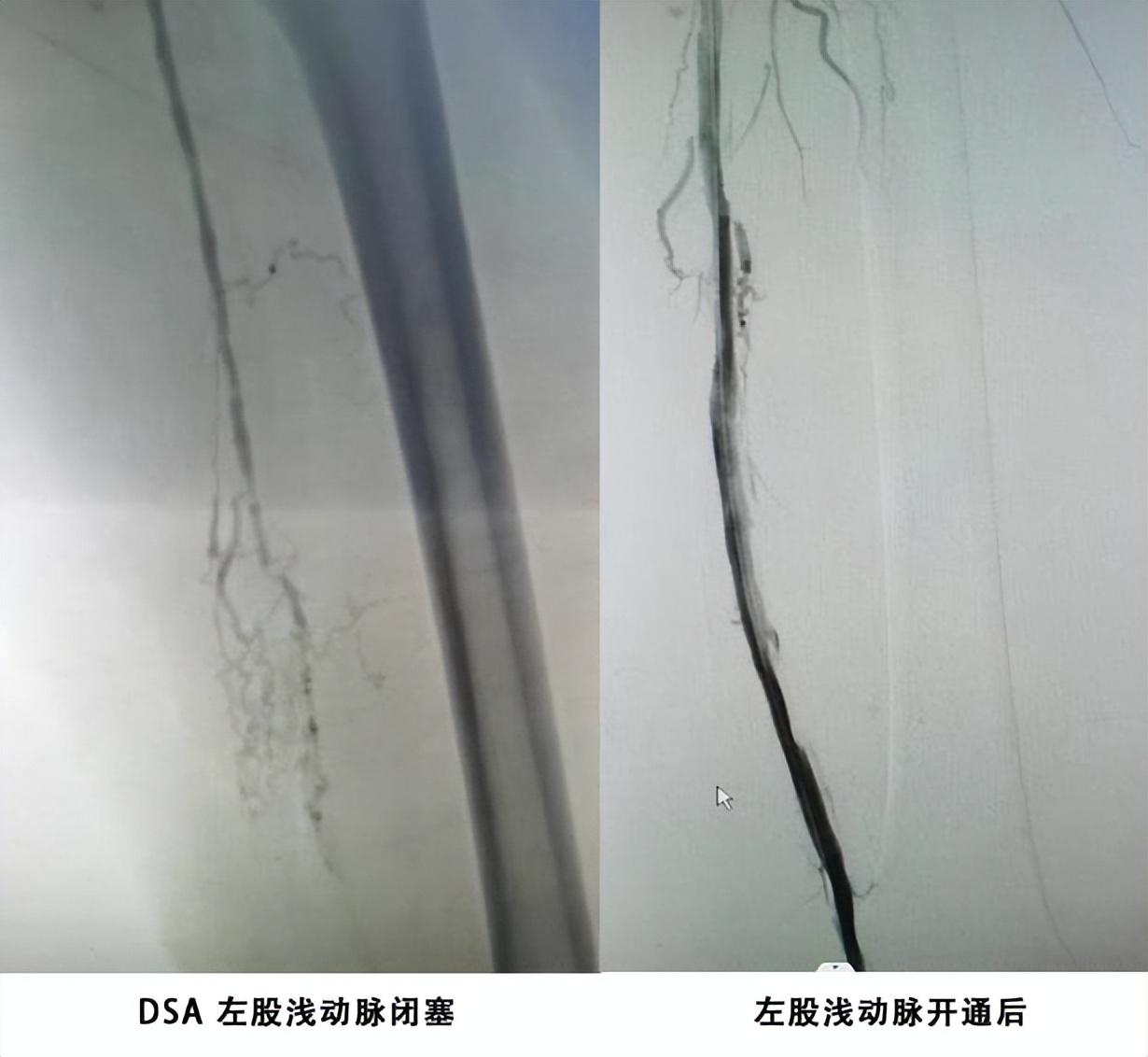 术中动脉造影显示,朱先生多次动脉硬化严重,髂动脉及下肢动脉多处闭塞。鉴于患者为中青年男性,由姚凯主任、王征副主任医师、刘炼副主任医师组成的专业血管手术团队,凭借高超医疗技术,认真细致的操作,成功从真腔打通两处关键血管的长段闭塞,使用多种先进球囊,顺利完成了两处动脉硬化闭塞的腔内血管再通术,避免使用支架,从而避免了后期可能面临的相应麻烦。