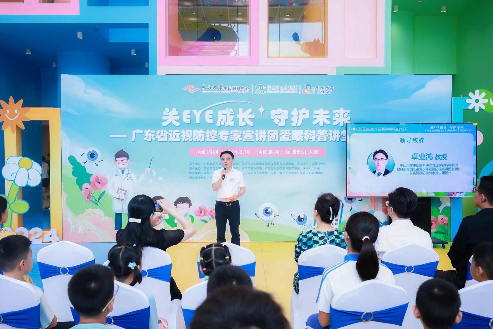 随着暑假的到来,近视问题再次成为家长们关注的焦点。8月10日,在深受孩子们喜欢的“巨型万花筒”深圳妇儿大厦,“关EYE成长,守护未来”——广东省近视防控专家宣讲团爱眼科普讲堂系列活动精彩开讲,通过生动有趣的科普宣教和互动问答,引导孩子们远离近视,享受一个“睛”彩的夏日。