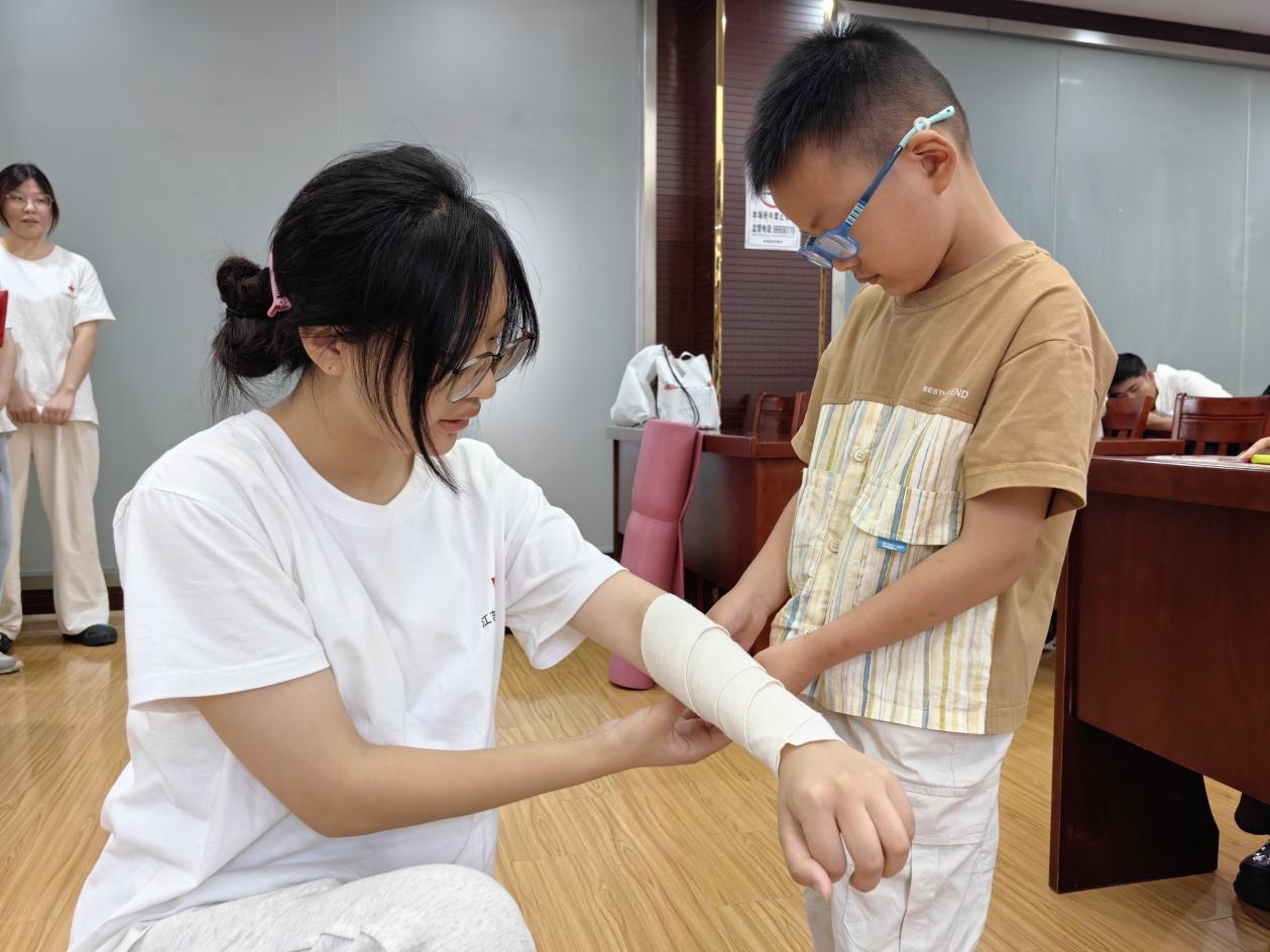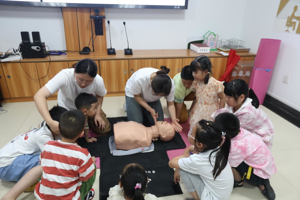 萌娃学急救 安全护一夏。在金湖县塔集镇、黎城街道、金北街道、银涂镇等地,志愿者们通过生动有趣的讲解和操作演示,向参加“小青淮”暑期公益夏令营的孩子们传授了心肺复苏、止血包扎、烧伤处理等一系列在紧急情况下至关重要的急救技能。孩子们聚精会神地聆听,积极参与互动,眼中充满了对知识的渴望和对生命的敬畏。