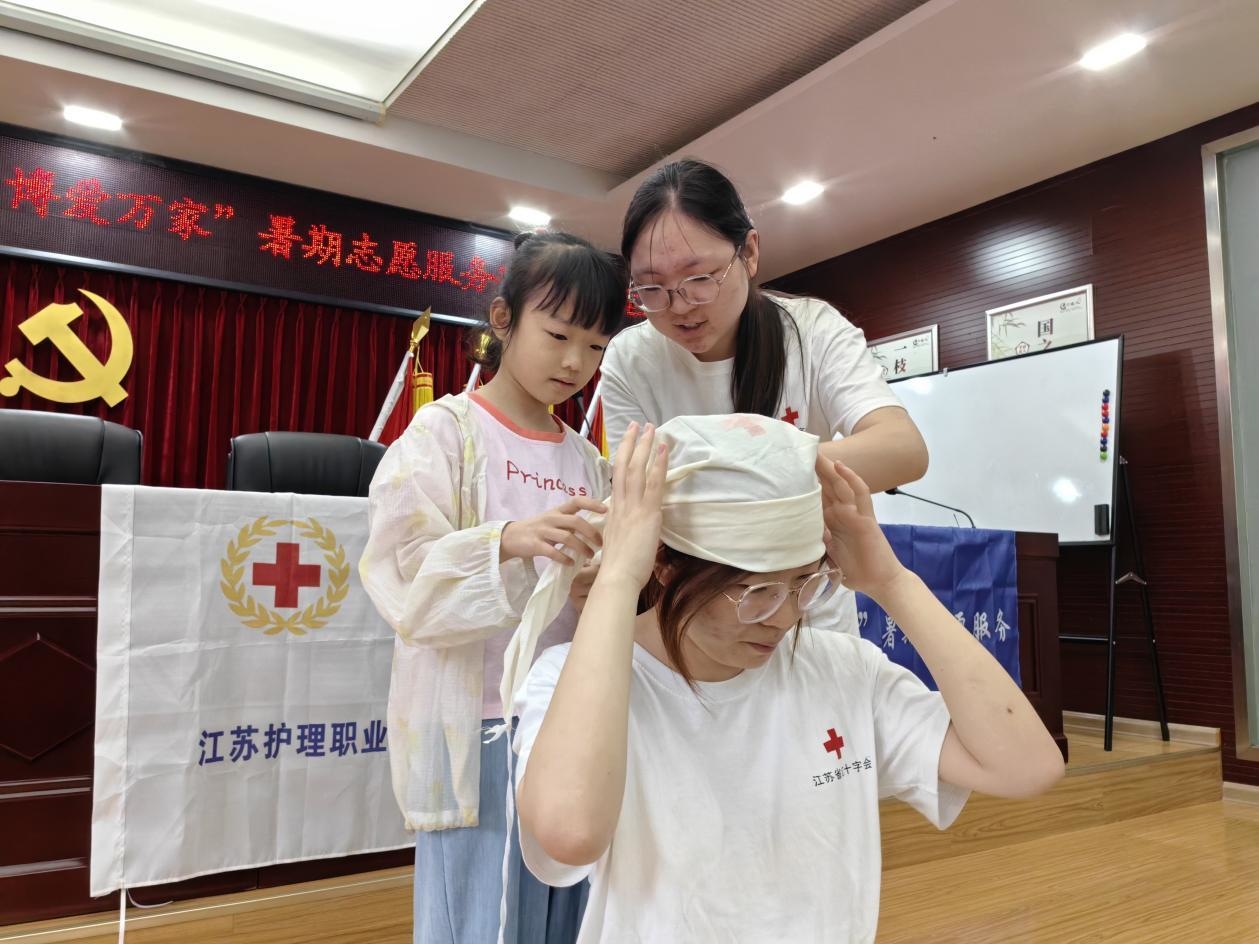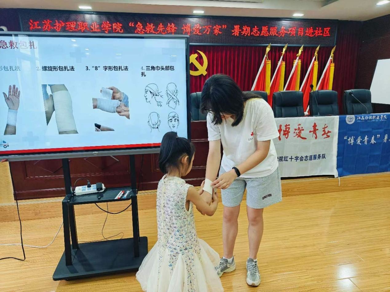 为进一步提高镇街中老年人、青少年在突发状况下的自救互救能力,增强他们的安全防范意识和应急救护能力,江苏护理职业学院护理助产学院“急救先锋 博爱万家”暑期志愿服务项目依托“小青淮”暑期公益夏令营实践项目,于2024年7月10日至7月28日间深入金湖县塔集镇、黎城街道、金北街道、银涂镇等地,面向新业态群体子女及村民开展急救知识普及与技能推广活动。