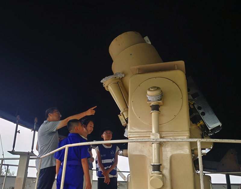 8月9日上午,来自京津冀的小学员们首先来到北京房山人卫激光国家野外科学观测研究站(以下简称“北京卫星激光国家野外站”),在何正斌博士、许长辉博士的带领下,既学习到了人造卫星的相关基础理论知识,又近距离体验了卫星激光测距和北斗大模型等专业设备。