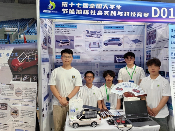 该团队针对电动车空调能耗占比大等问题,研发了一种遮阳发电一体化车篷,以光伏发电技术为核心,减少电能消耗、降低汽车空调能耗与提高电动汽车续航里程,力行节能减排。对车篷整体进行多次设计优化、更新迭代,共设计了三代作品:折叠式车篷、卷轴式车篷、四方卷轴式车篷,且均实现全自动化。此外,在作品更新迭代的过程中,团队立足实际情况,结合光伏发电特性,创新性地设计了新型智能采光系统,从而大幅提高了光能的利用率。