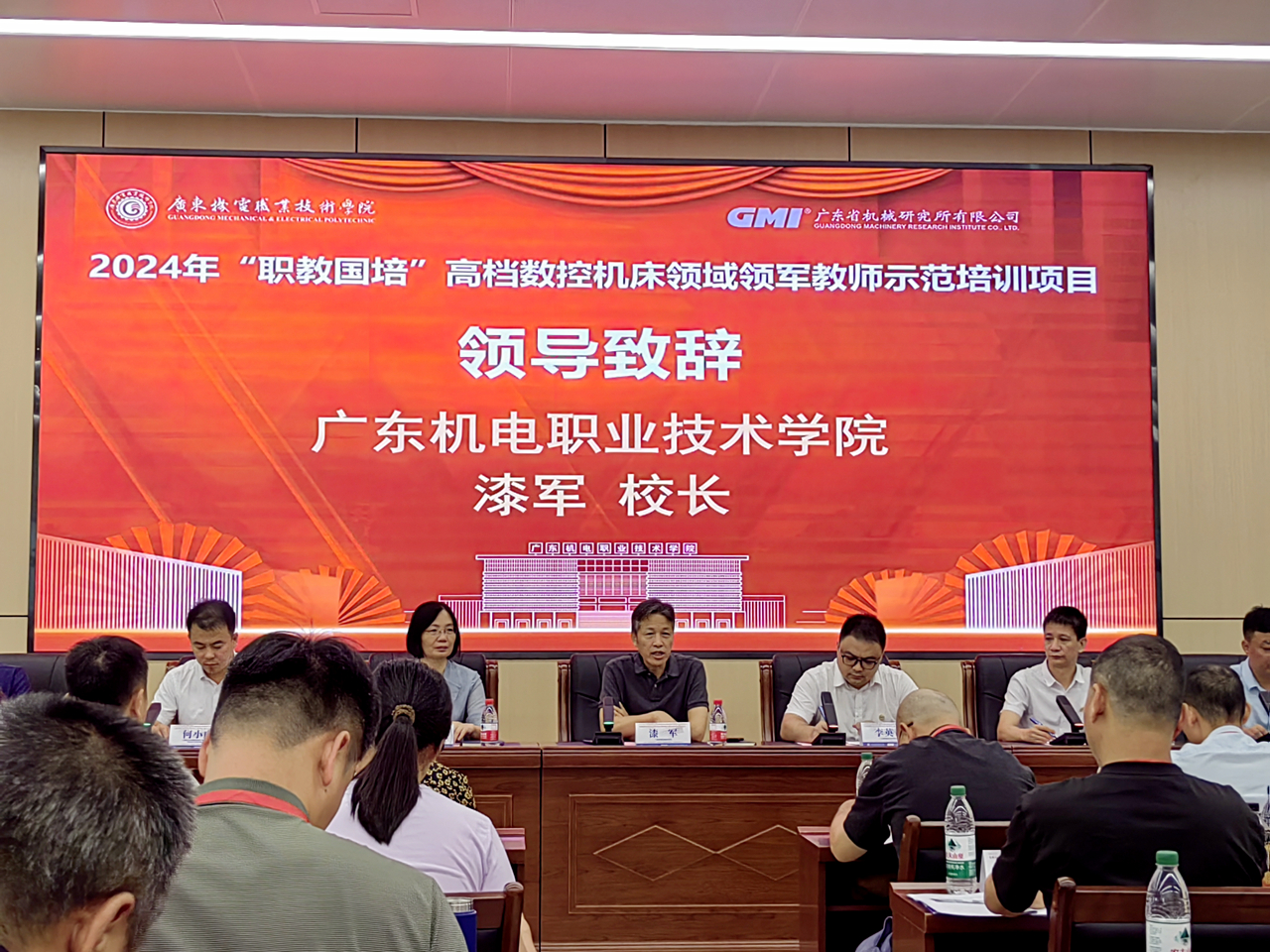 会上,广东机电职业技术学院校长漆军代表学校致辞,向远道而来的各位领导、专家及参训学员表示了热烈欢迎和诚挚感谢,“ 能够承办此次教育部教育工作司主办的‘职教国培’示范项目,是我校的荣幸,也是对学校实力与培训能力的充分认可。车铣复合加工技术是中国制造2025发展的高端技术,是人才培养的前沿方向,希望参训教师通过培训学习,进一步提升素质、锤炼技艺,为我国职业教育的发展贡献智慧和力量。”