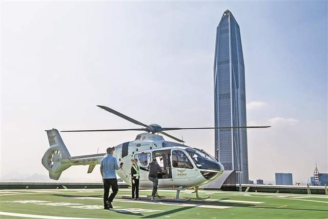 “燕子湖会展中心往返福田大中华”直升机固定航线拉近了坪山与中心城区的距离,打个“飞的”往返已成为现实。 深圳特区报记者 刘羽洁 摄