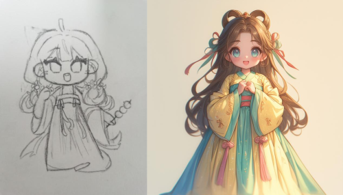 科技星光育乡村,艺术甘露润大地。抵达黄江镇的首日,“星空筑梦”团队实地勘察了当地的美育基地及墙绘基点,并且对玉堂围社区的社会环境、乡土文化、人文风情进行了深度的研究,最后与黄江镇团委和玉堂围村负责人共同制定了详尽的合作目标与计划。7月8日,玉堂围社区AI美育课堂正式开展。“星空筑梦”团队就AI的核心内涵、AI的历史渊源和意义、AI创作的实际案例、如何使用AI绘画及扩散思维等内容来进行讲解与示范。从手绘到AI绘制方方面面,用更通俗易懂的语言和绘画技法向小朋友解释AI艺术创作,引导小朋友理解AI、运用AI。在课堂实操第一阶段中,小朋友在老师指导下绘制自画像,再通过AI进行优化。