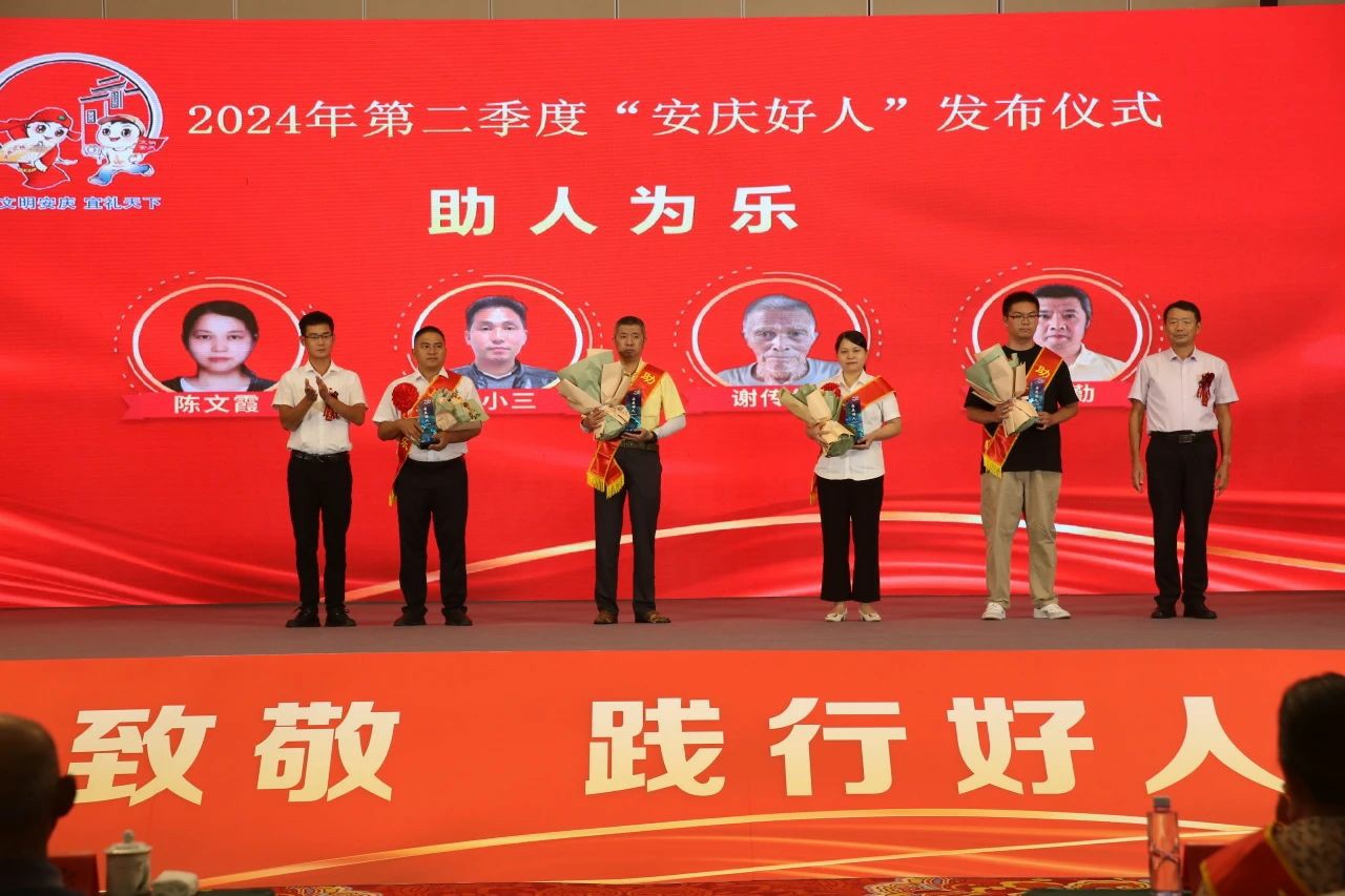 仪式上播放了《好人善举·德润宜城》宣传片,发布了助人为乐类、敬业奉献类、见义勇为类、孝老爱亲类、诚实守信类“安庆好人”,并为他们颁发了“道德传家宝”,部分好人代表进行了宣讲。