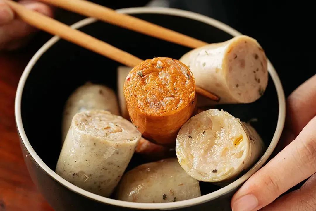 瘦肉选用猪后腿肉,细腻鲜嫩,肥肉选用猪脊膘,肥而不腻。再添加鸡肉提升肉质的鲜嫩感。
