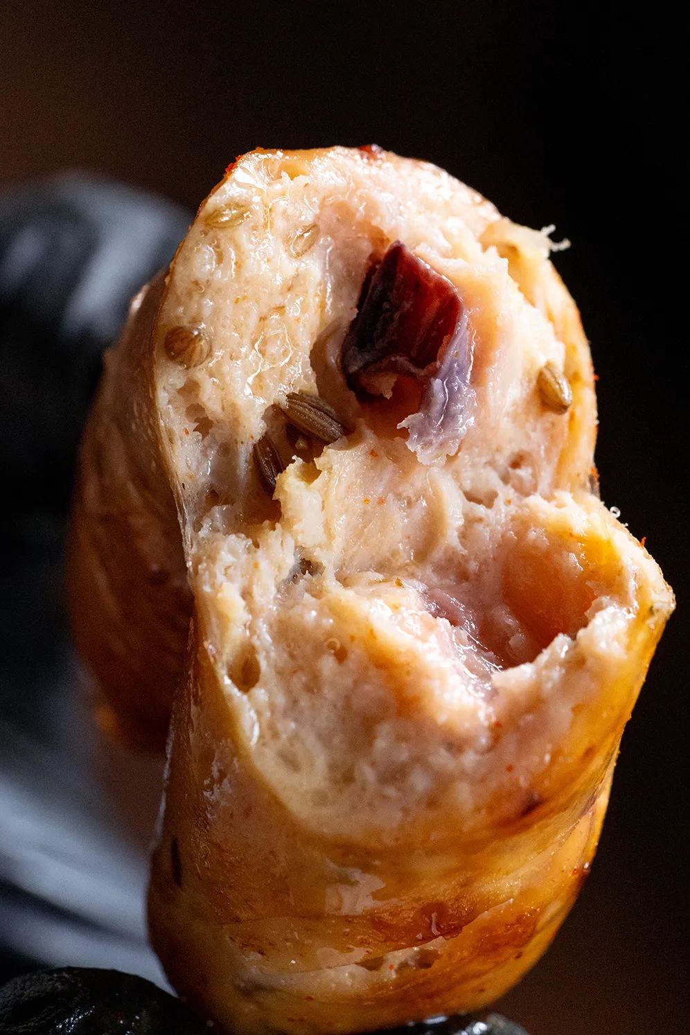 肠衣薄如蝉翼,恰到好处地锁住水分。