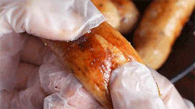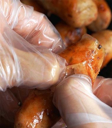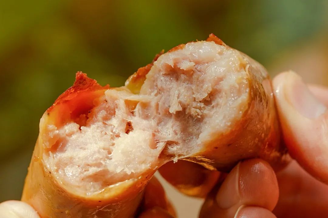 轻薄的胶原蛋白肠衣紧紧包裹着肉肉,