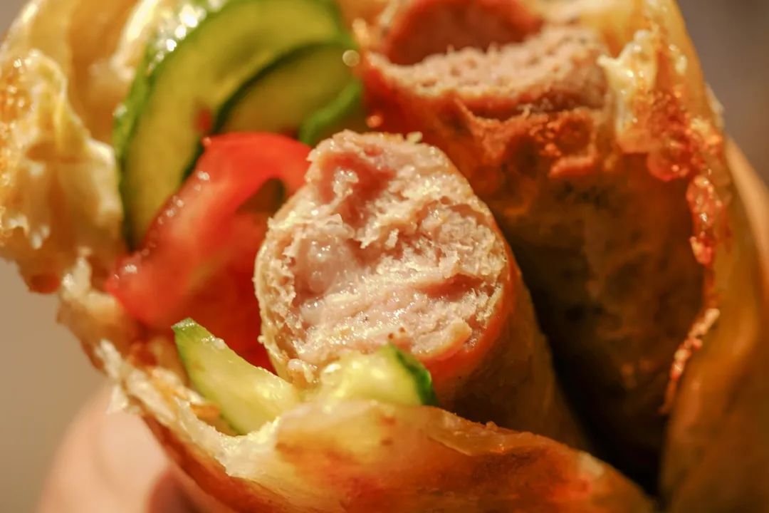 每一口都嘎嘣弹脆,穿透爆汁烤肠的爆裂声在齿颊间蔓延,