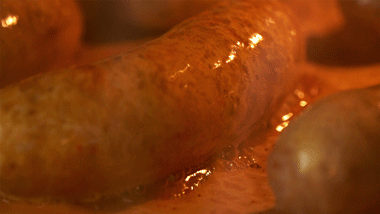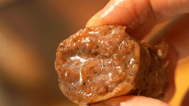 我尤其喜欢脆骨肠,肉肠里含有脆骨,咯哒咯哒嚼着特别快乐。