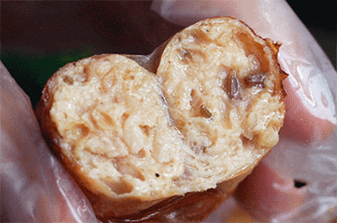 肉感丰腴紧致,鱿鱼、猪肉、鸡肉颗粒清晰可见。
