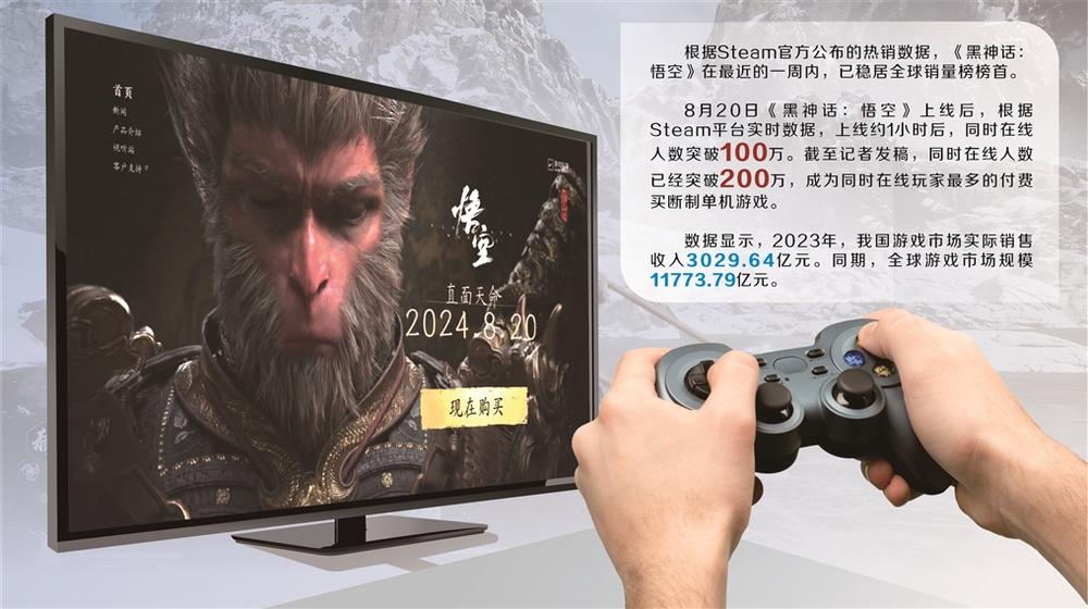 8月20日上线后,玩家的热情也远超预期。根据Steam平台实时数据,游戏上线约1小时后,同时在线人数突破百万,3小时后突破140万。截至记者发稿,同时在线人数已经突破200万,成为同时在线玩家最多的付费买断制单机游戏。这是国内游戏厂商取得的重要突破。