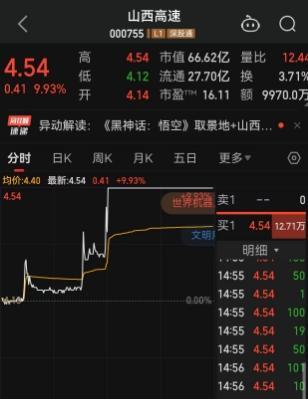 《黑神话》上线当天,山西旅游热度环比上月翻倍,山西高速直线涨停