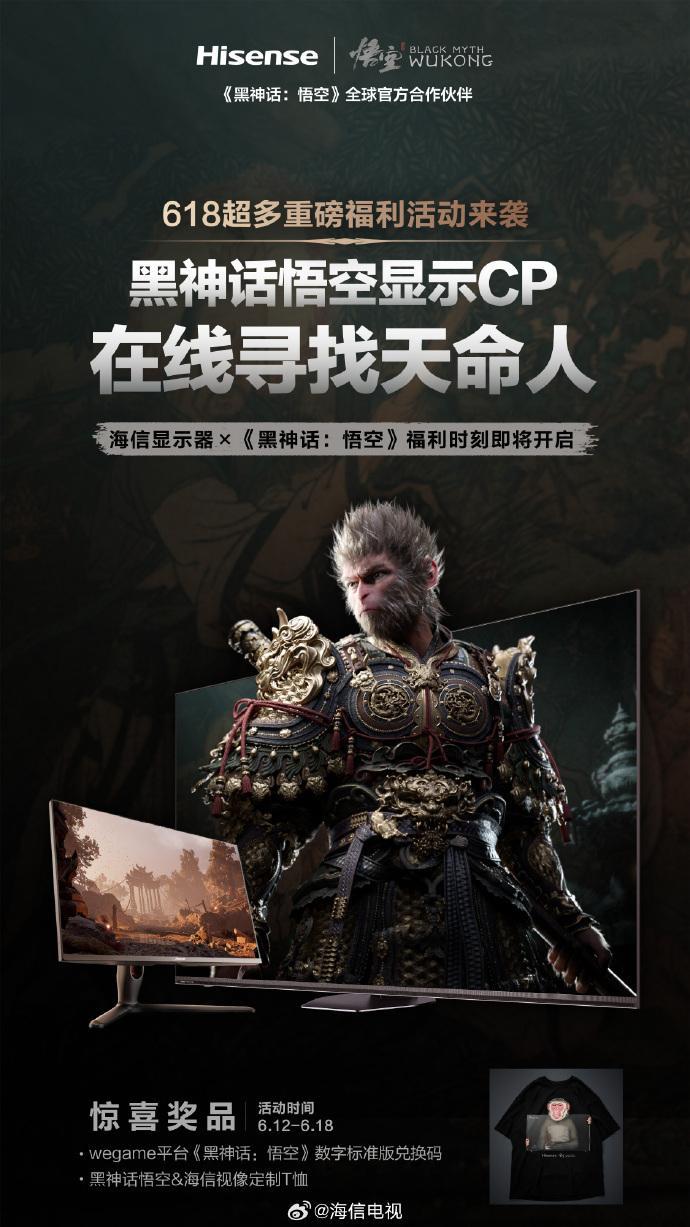4月17日,在“AI美好生活”2024海信电视E8系列新品发布会上,海信电视宣布成为《黑神话:悟空》全球官方合作伙伴。推出官方定制电视——旗舰新品海信电视E8N系列,以及官方合作显示器——海信显示器27G7K Pro。