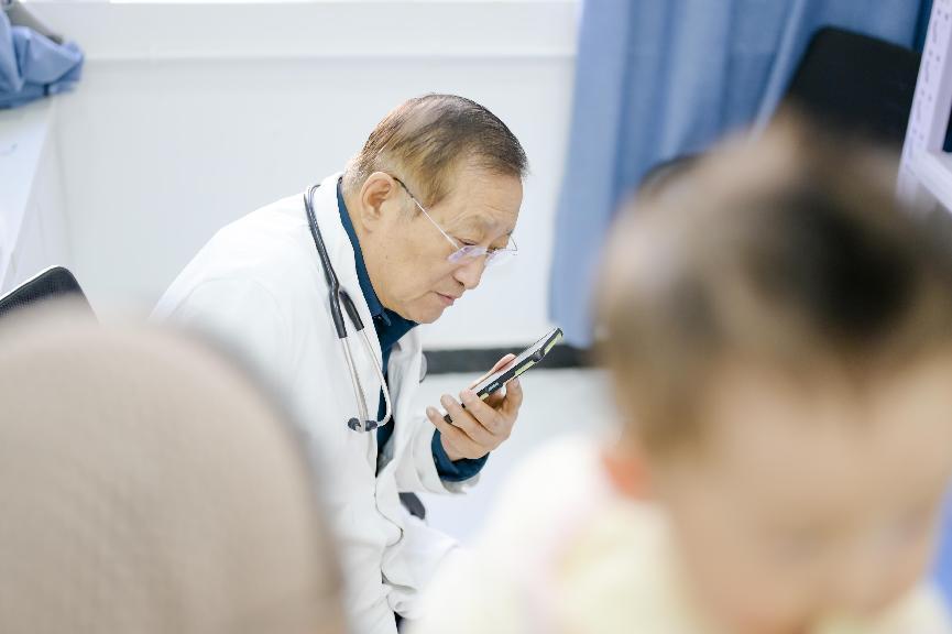 邹承伟教授为成人心脏病患者检查