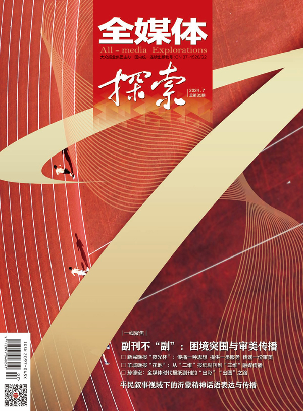 《全媒体探索》杂志是由大众报业集团主管主办的新闻传播类专业期刊,国内统一连续出版物号CN 37-1526/G2,国际标准连续出版物号ISSN 2097-048X。2021年8月创刊。办刊宗旨:聚焦媒体融合前沿,交流实践探索经验,加强新闻舆论引导,打造研究沟通平台,助力媒体全面深度融合发展。主要栏目:特约专稿、一线聚焦、融合转型、传播视点、舆情观察、新闻实务、视听传播、县级融媒、个案解析、智能应用、传媒法治、全媒人才、经营管理等。投稿邮箱:qmttsbj@126.com联系电话:0531—85196441