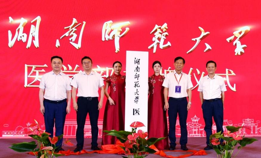 程博、蒋洪新、刘仲华、祝益民共同为湖南师范大学医学部揭牌。