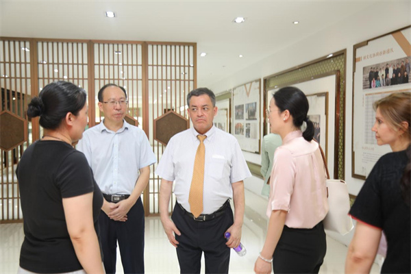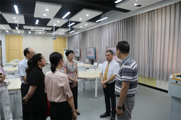 在校期间,伊万·马尔多纳多一行还在杨文萍、疏仁华陪同下,参观考察了学校教育教学与生活环境,围绕来华留学生培养进行探讨交流。