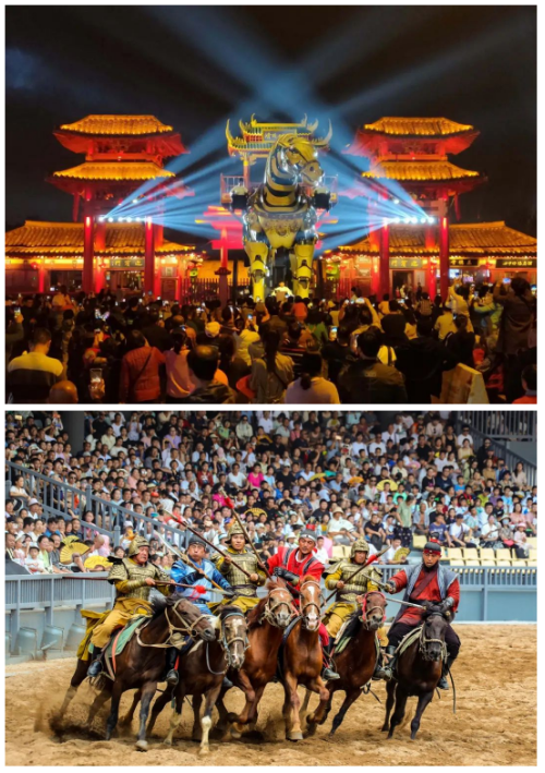 在保持全天演出剧目达百场的同时,景区不断对节目进行升级、提升、创编,2024年新推出的大型沉浸式夜景实景马战演出《岳飞·郾城大捷》,获得了游客们的广泛好评。