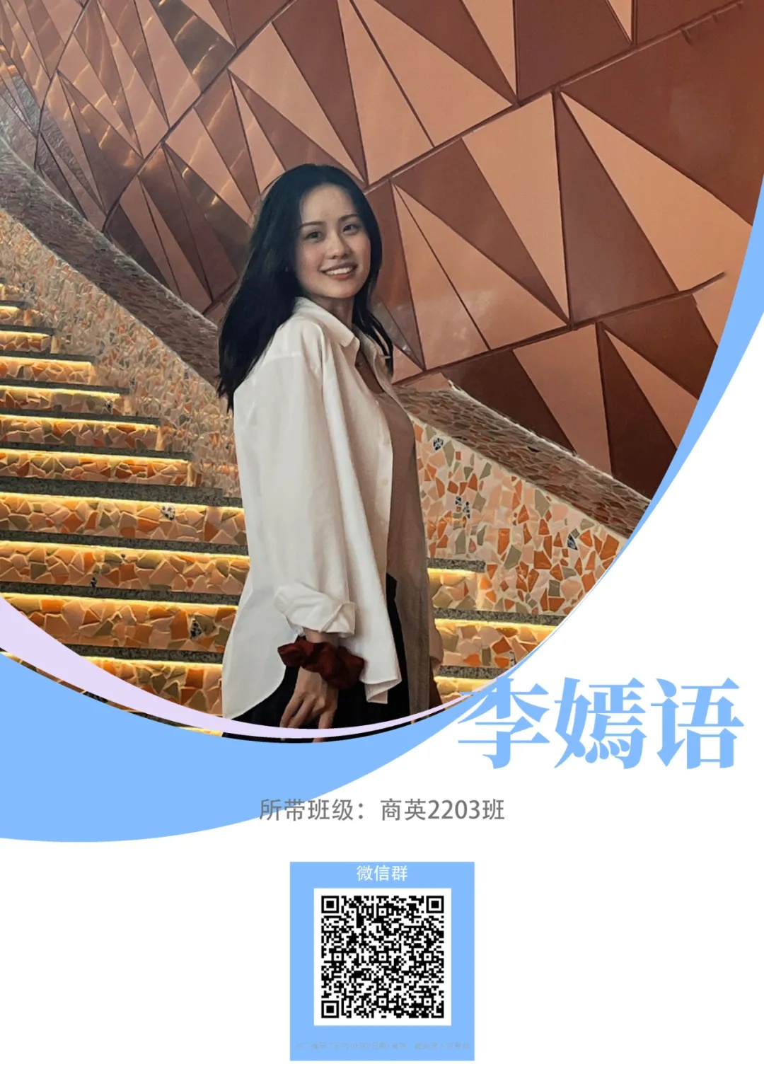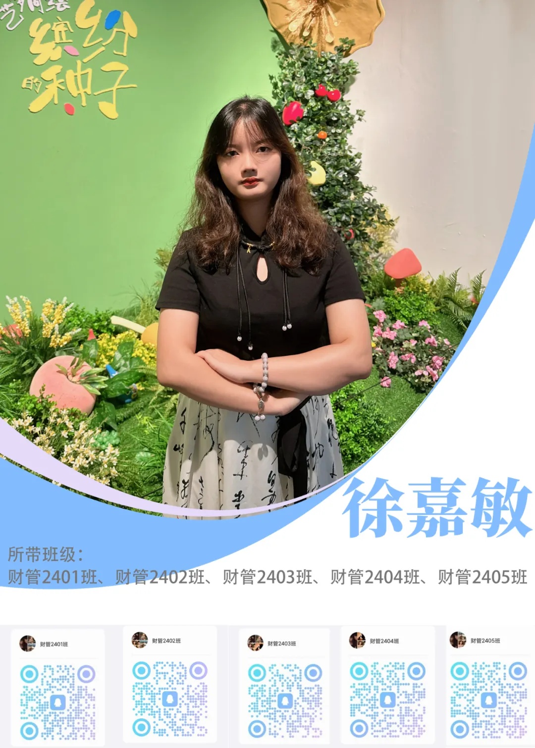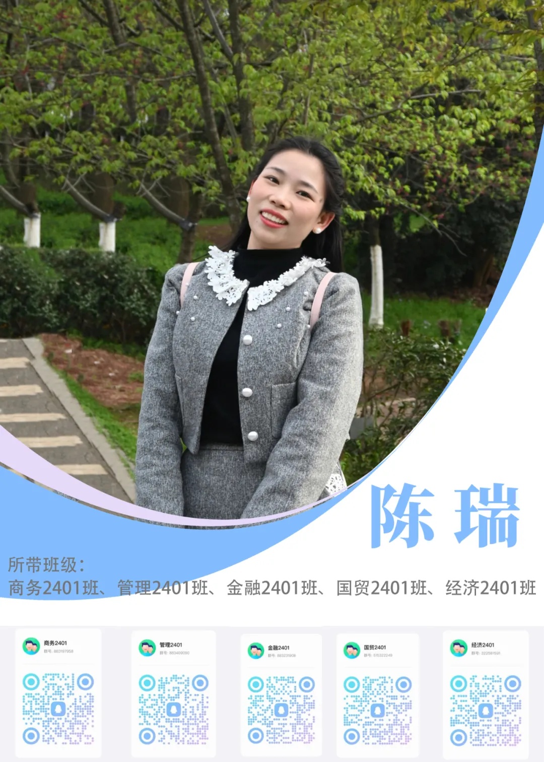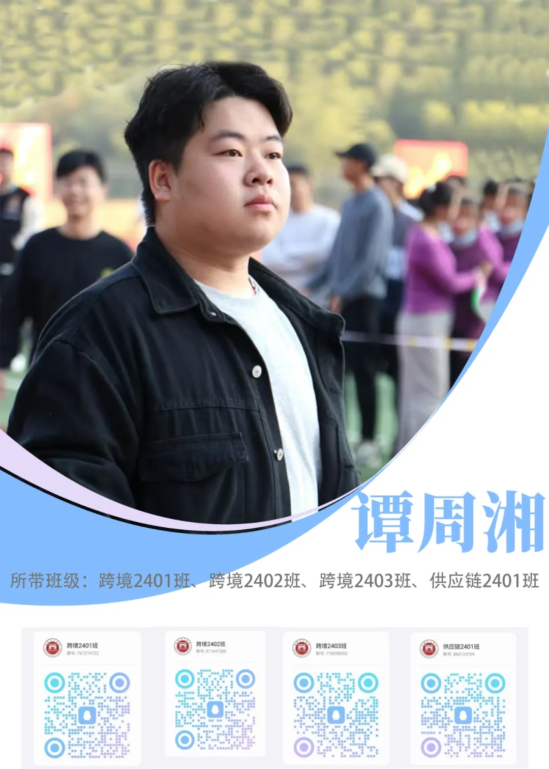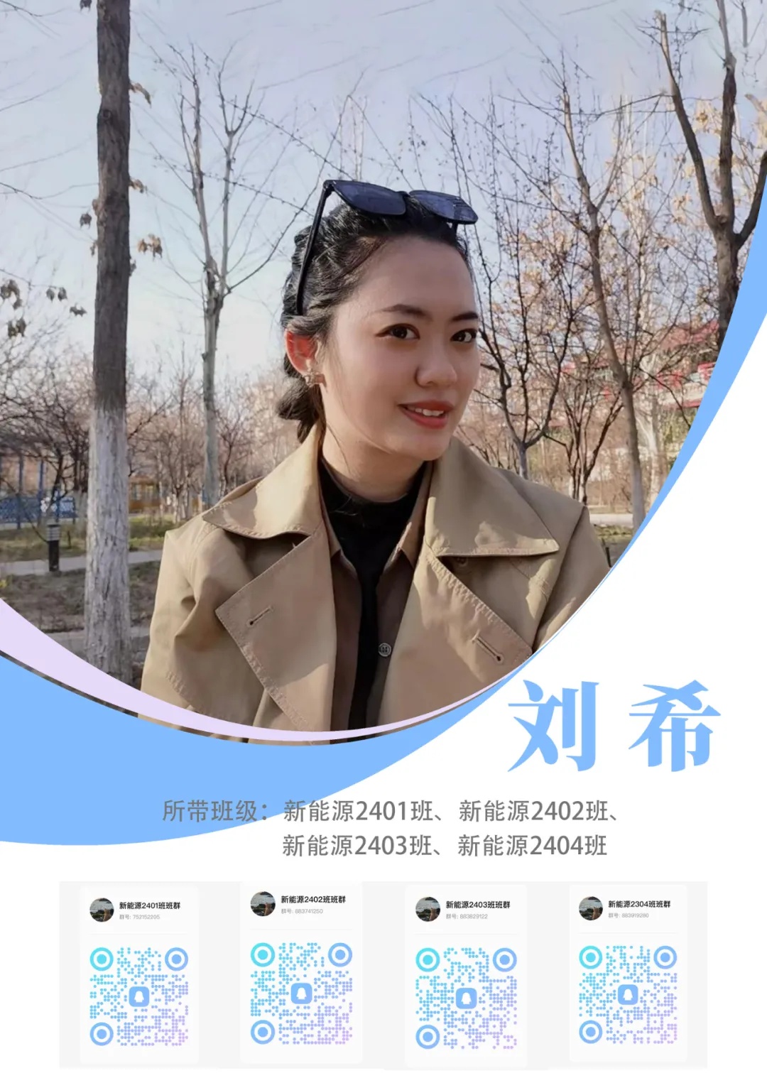新生寄语:大学是最美好的人生阶段,在这里你们将开启一段全新的旅程,很开心能和大家一同学习成长。希望你们秉持“知行合一 精益求精”的校训,在四年的时光里,努力成为一个有温暖,有思考,有判断力,有行动力的人。愿你们能够新装上阵,心欣茂发,以梦为马,不负韶华。