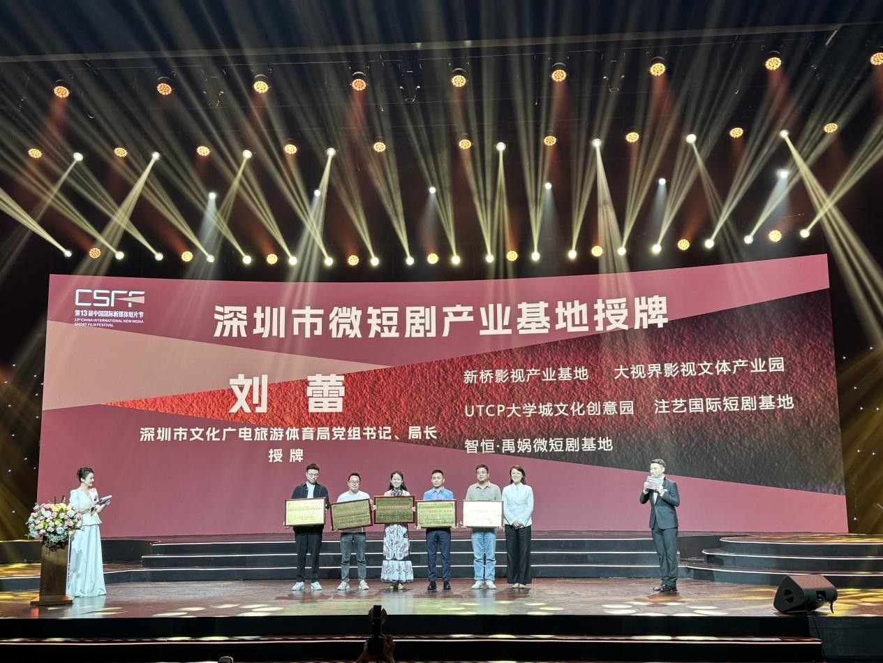8月29日晚,第十三届中国国际新媒体短片节“金鹏之夜”盛典在光明区文化艺术中心举行。本届盛典上,广东省和深圳市分别发布了微短剧产业的相关政策,其中,智恒·禹娲微短剧基地获得授牌成为“深圳市网络微短剧产业基地”。