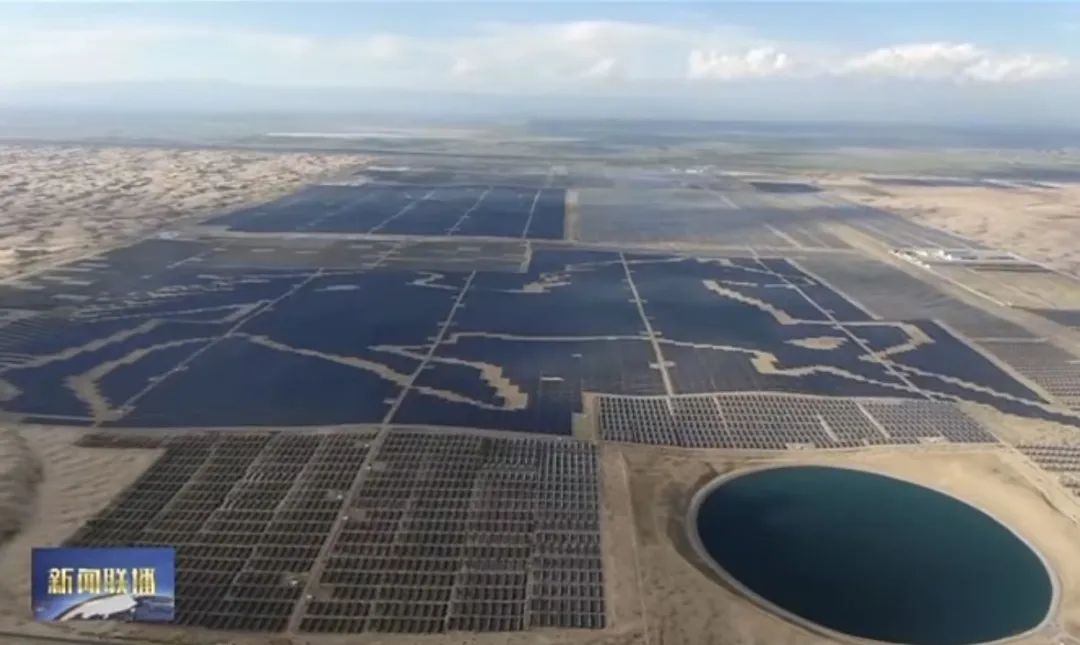 据悉,达拉特光伏发电应用领跑基地“骏马电站”在鄂尔多斯市库布其沙漠,由196320块光伏板组成,占地130多万平方米,从空中俯瞰,一块块光伏板在黄沙中形如一批驰骋的骏马。