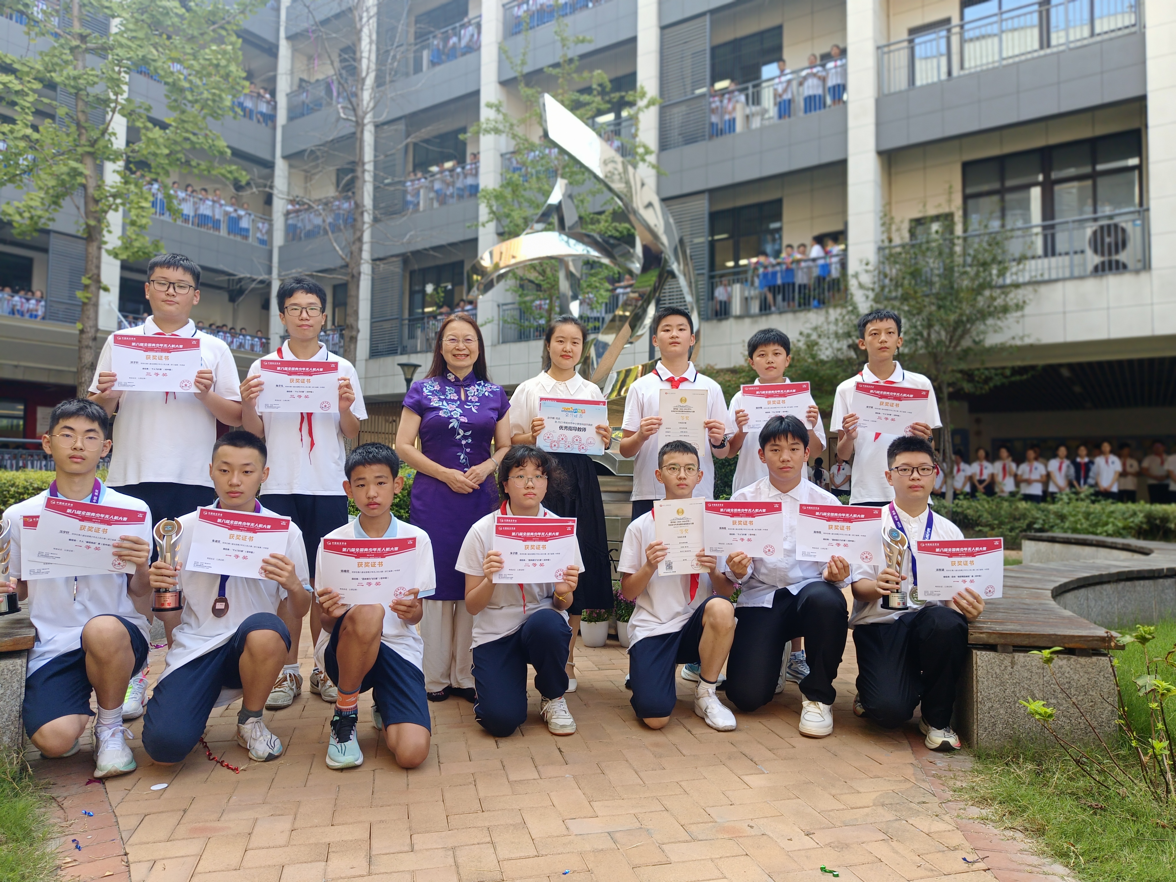 《浙江教育报刊》编审言宏老师为第八届全国青少年无人机大赛获奖同学颁奖,表彰他们假期中代表学校参加全国赛并获得佳绩。言老师十分认同学校的育人理念,让每个学生站在C位,也由衷地希望每个蕙中学子都能创造属于自己的C位,做独一无二的自己。