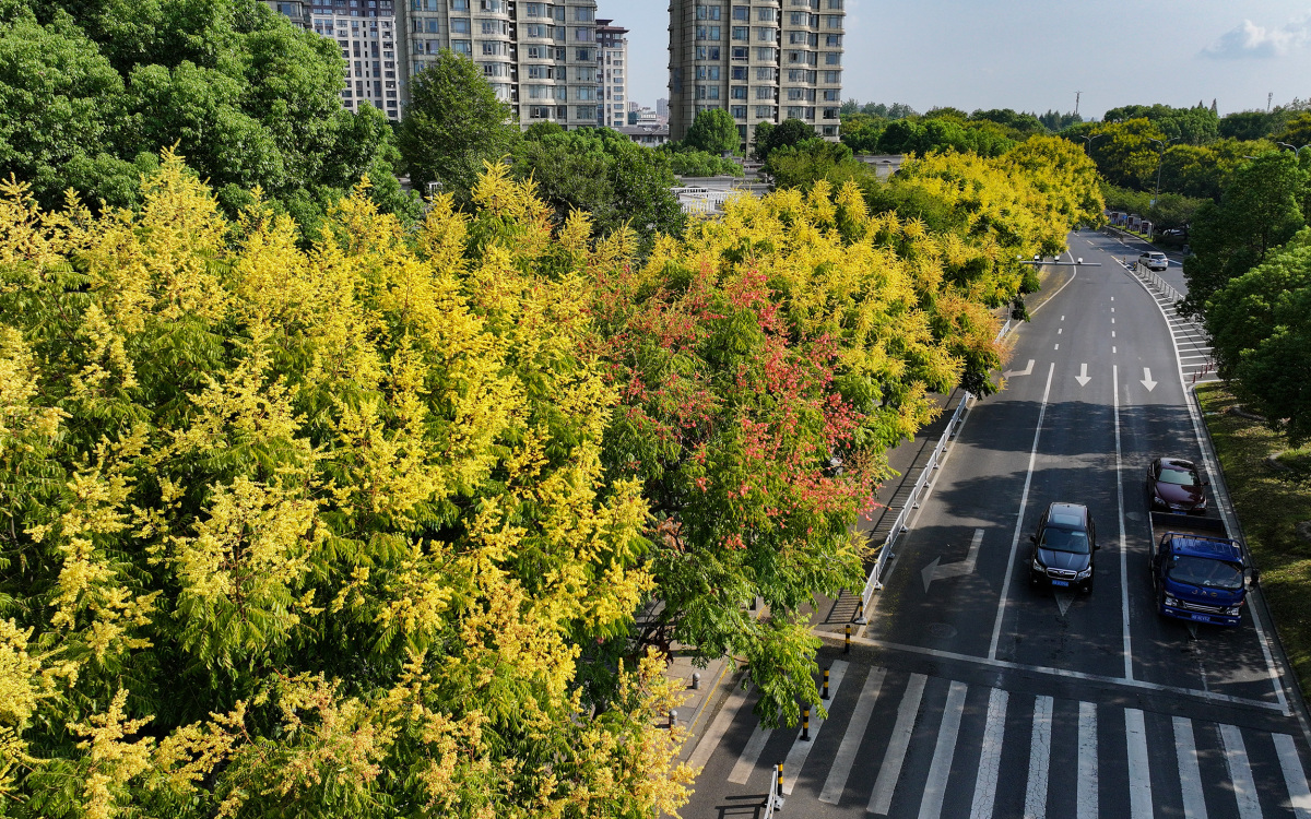 宁波街头,满城的黄山栾树陆续进入盛花期,黄花、红果、绿叶交相辉映,随手一拍都是大片。