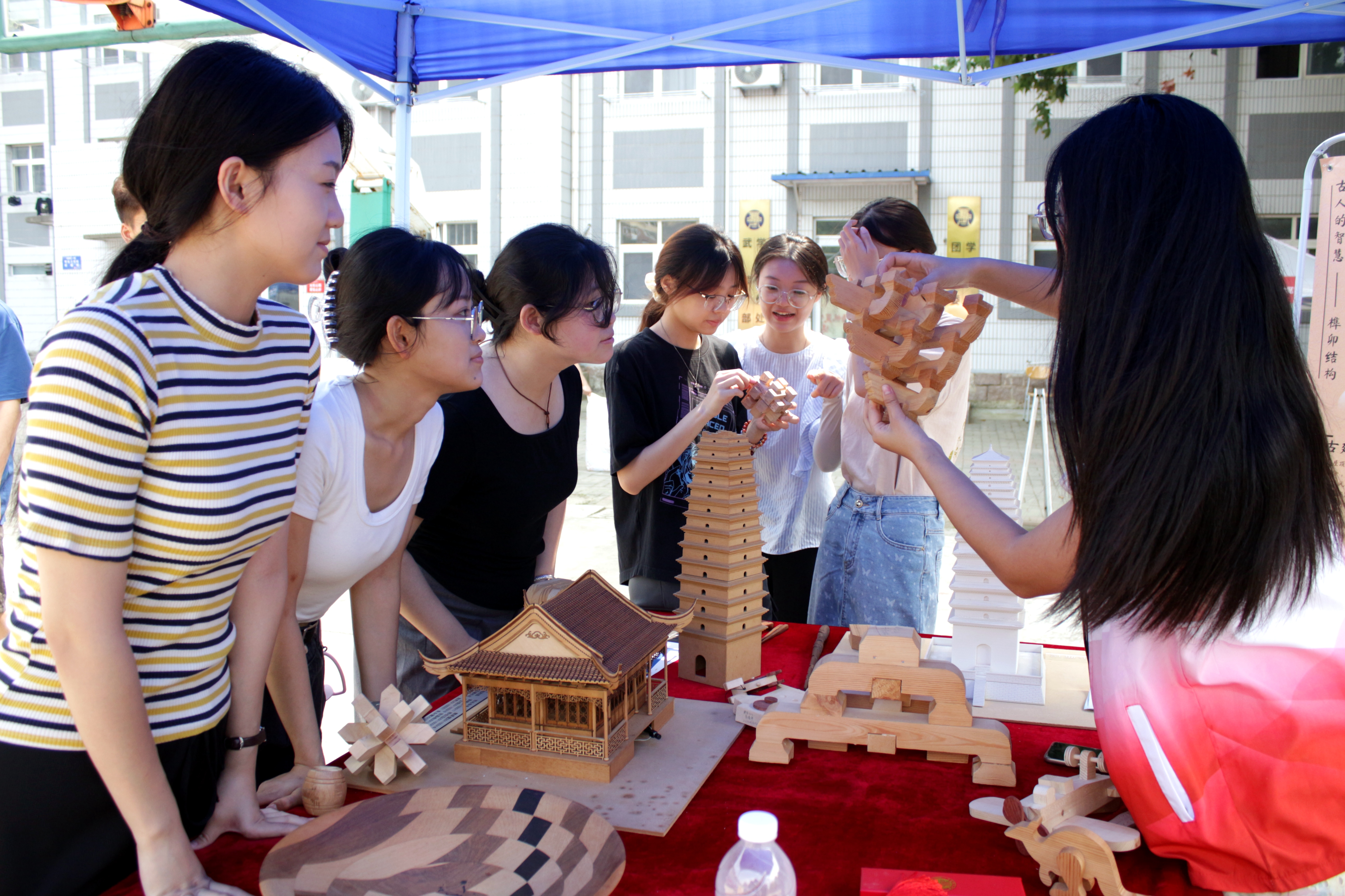 “氛围感太足了。我从小就对传统古建筑特别感兴趣,今天来到报到现场,报到牌、签名墙,还有各种体验活动,处处都有古建元素,真的非常激动。”建学242班新生张国豪在报到现场开心地说道。建本241班新生孟琛凯则感慨,没想到学院通过这种很新颖的形式,让新生在报到现场就体会到了建筑类专业的“时尚”,得知这些传统古建模型是利用无人机测绘和AI生成,再进行模型切割,最终动手拼装起来的,他真切感受到了现代技术在古建文化传承保护中的力量。