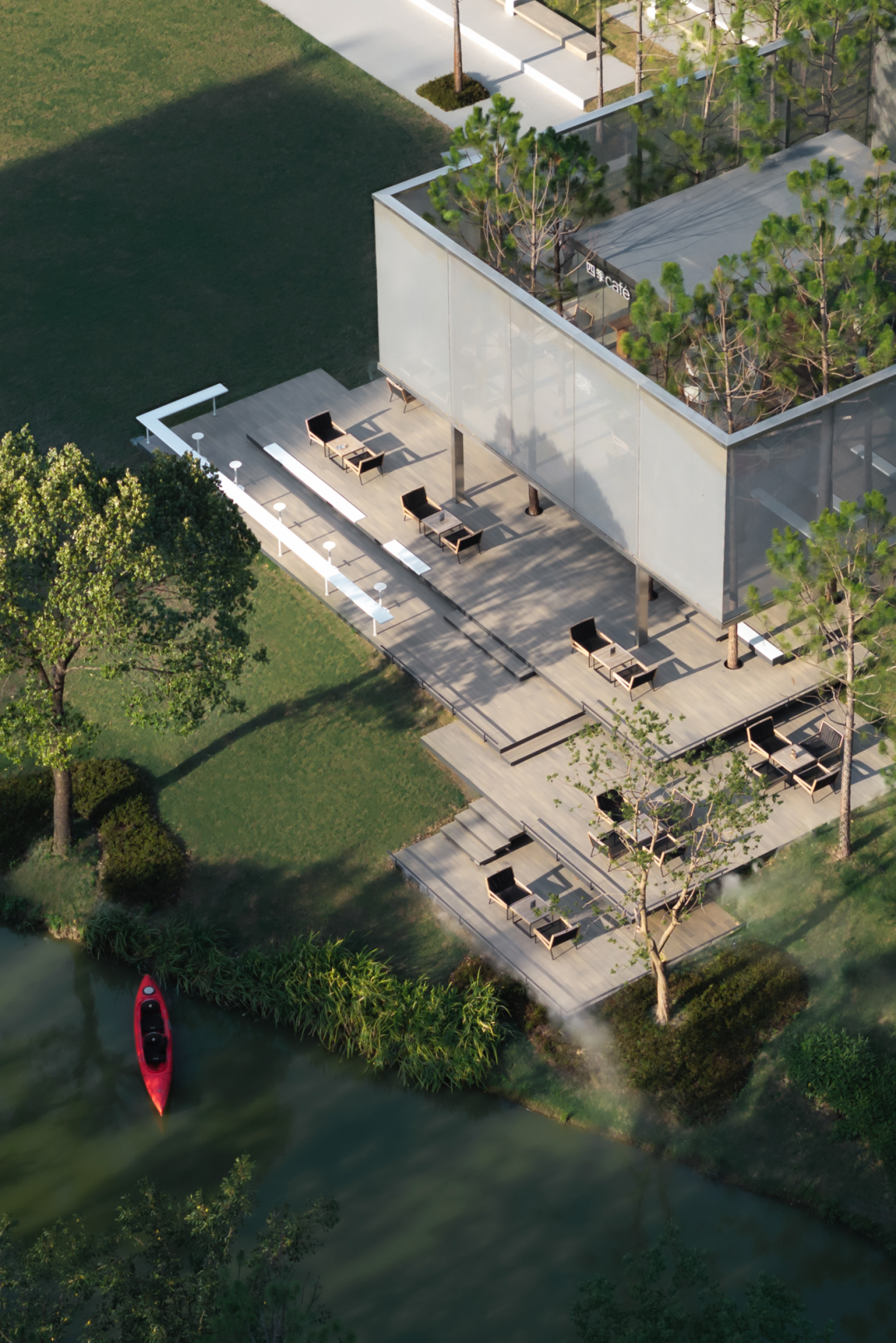 ▲构筑物兼具咖啡馆和书吧、休息区等多元实用功能