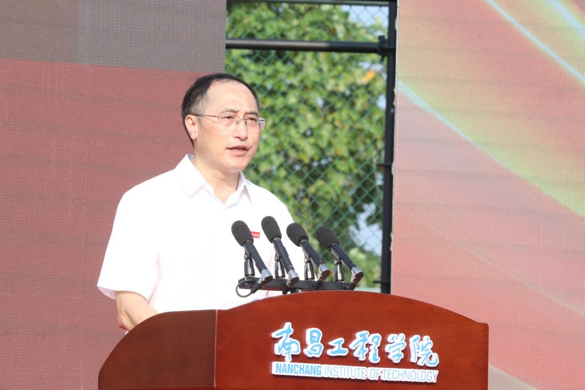 校长刘祖文教授对新同学的到来表示热烈欢迎。他介绍了学校2024级新生情况和服务新举措。他指出,南昌工程学院是一所色彩斑斓、底蕴深厚、前程似锦的大学,正大步走在高质量发展的道路上。他勉励同学们要心怀信仰,勇做顶天立地之才;要为国求学,勇做国家栋梁之才;要为学日新,勇做科技新秀之才;要为人至诚,勇做创业先锋之才;要为民奉献,勇做基层骨干之才。他希望同学们以水为师,学习水柔而能克刚的坚持精神、水静而映物的自省精神、水动而能变化的变通精神、水滋养万物而从不争夺的奉献精神,努力提高自己的智慧和情操,勇做担当民族复兴大任的时代新人!