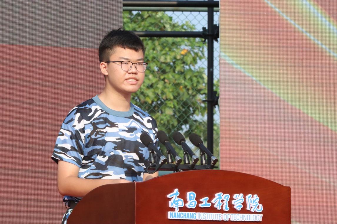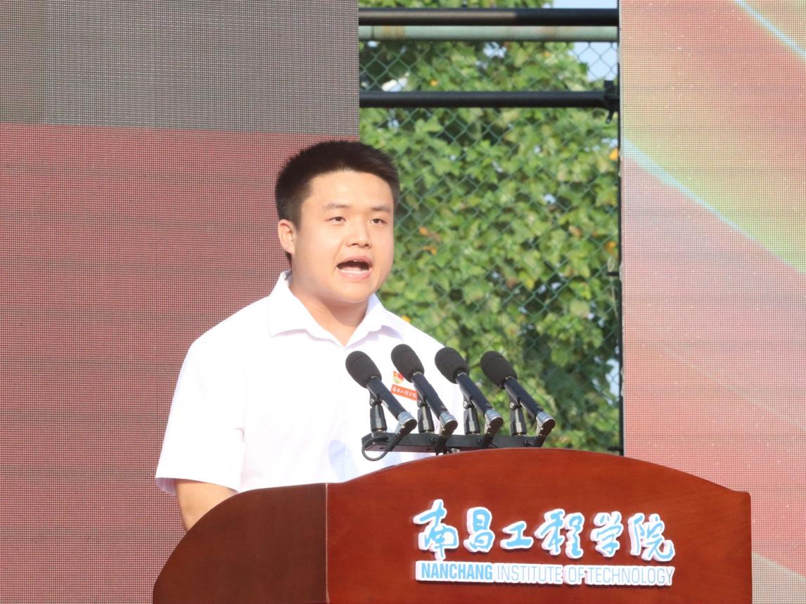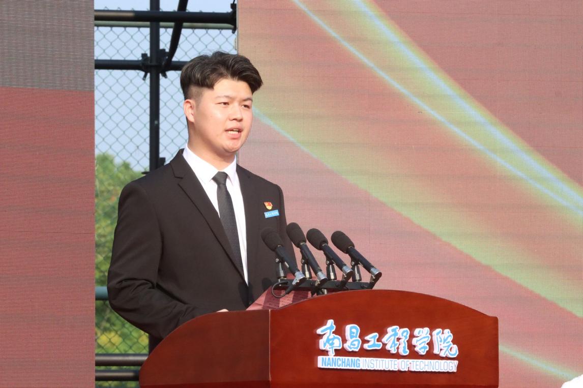 2021级国际经济与贸易专业叶高健同学作为老生代表发言。他向大家分享了自己在南昌工程学院的学习生活经历,勉励学弟学妹们要使命如炬、初心如磐,怀着青衿之志,驰而不息,成为一名“自强不息,格物致知”的南昌工程学院人。