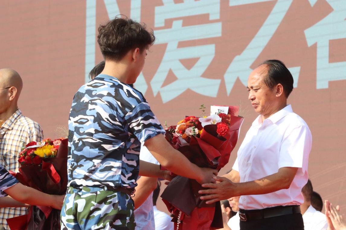 学校还邀请了14名家长代表出席典礼。新生代表向自己父母献花致谢,感恩父母的养育和陪伴。