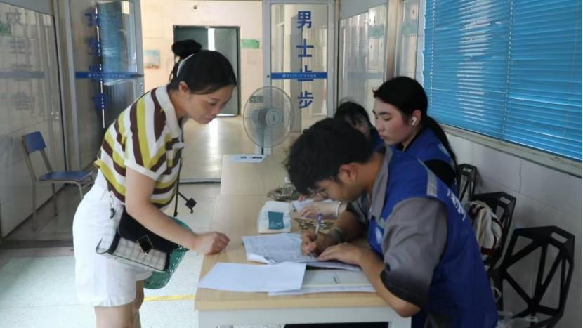 身穿红马甲的志愿者们穿梭在新生之间,为新生们搬运行李,指引方向,解答疑惑。志愿者们的身影成为校园的一抹亮丽风景,他们每一次热力四溢的微笑、毫不犹豫伸出的援手,都让初来乍到的新生感受到家一般的温馨。迎新志愿者由各学院学生志愿者及机关党员志愿者组成,他们用饱满的热情和细致的服务迎接来自五湖四海的“新人”。