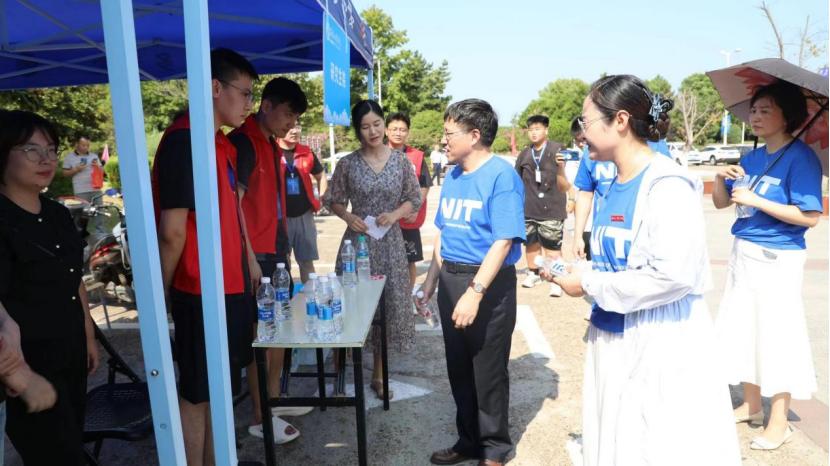 “家乡是哪里的”“选这个专业有什么期待”“住得习不习惯”“初入校园有没有什么困难”……学校党委书记汪胜前、校长刘祖文十分关心新生们报到事宜,到现场检查迎新工作,了解新生报到各环节工作情况,先后查看了艺术采风展、西大门迎新点、学生社区迎新点等工作区域。每到一处,他们都亲切慰问志愿者们,对他们的无私奉献表达由衷感谢。