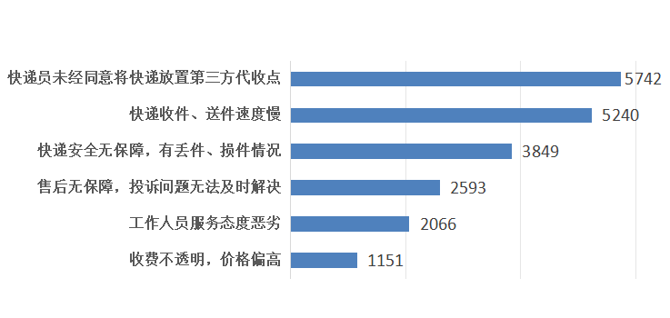 5742人选择“快递员未经同意将快递放置第三方代收点”,占总样本数据51%;