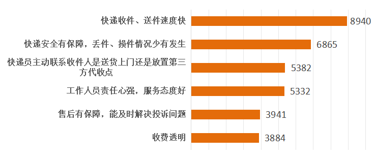 选择最多的是“快递收件、送件速度快”,有8940人,占总样本数据80%;