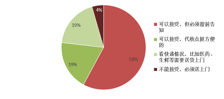6477人选择快递放在第三方代收点“可以接受,但必须提前告知”,占总样本数据58%;