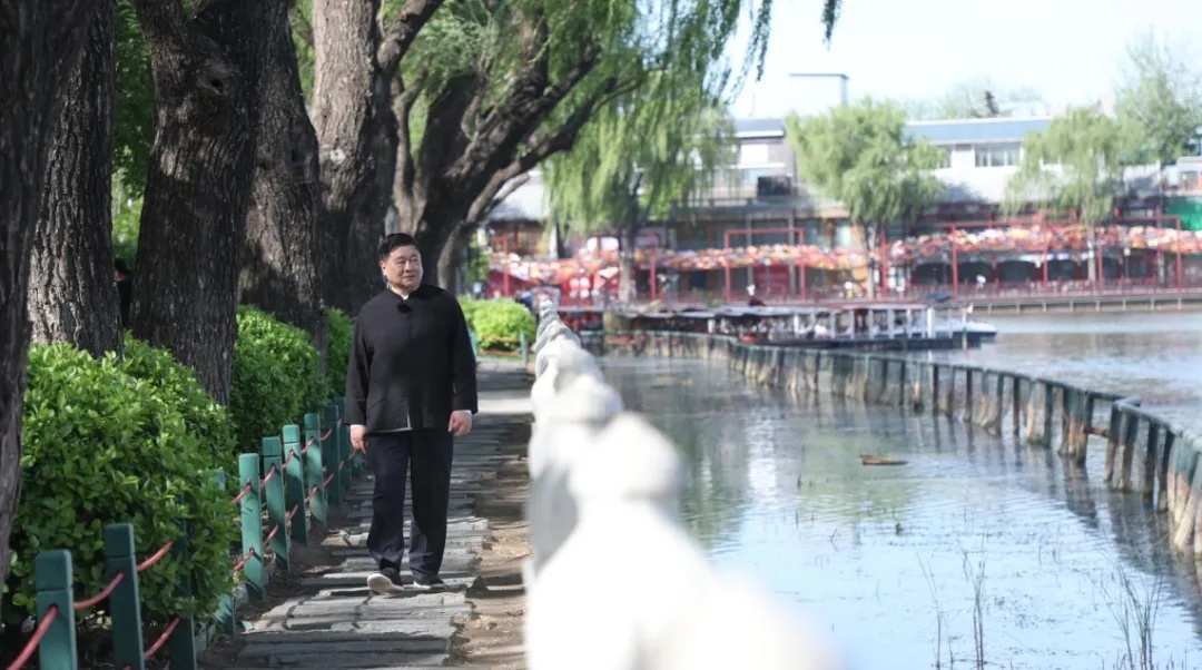 △单霁翔在北京什刹海漫步。(图/高宏远)