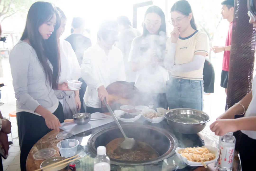 在“传统地方美食制作”活动中,学生们热情高涨、跃跃欲试。在厨师的讲解下,了解了烩面、胡辣汤等美食文化背景,并初步掌握了食材准备与搭配、制作方法和技巧。大家分工合作,秩序井然地完成了烩面、胡辣汤的美食制作。