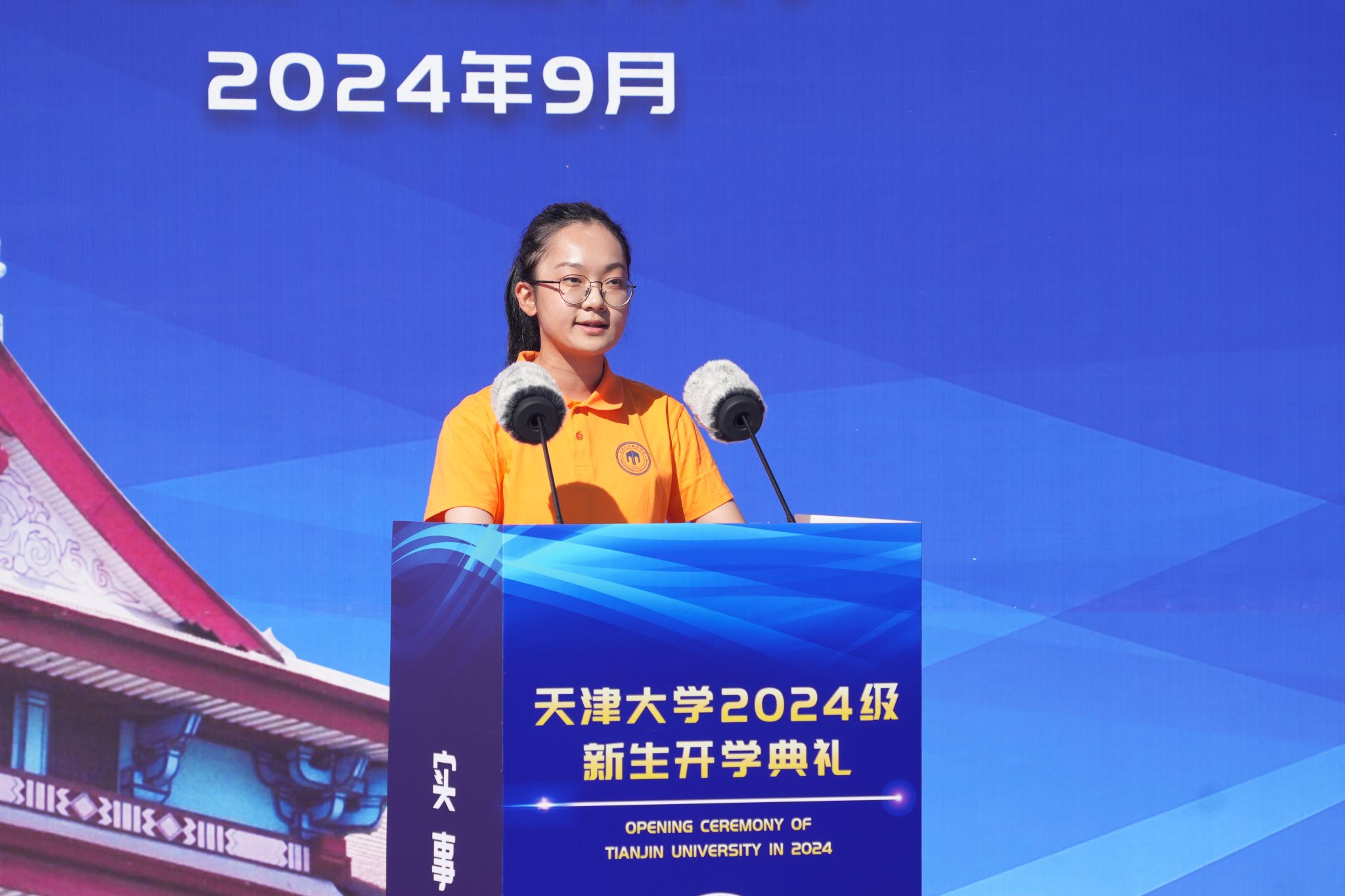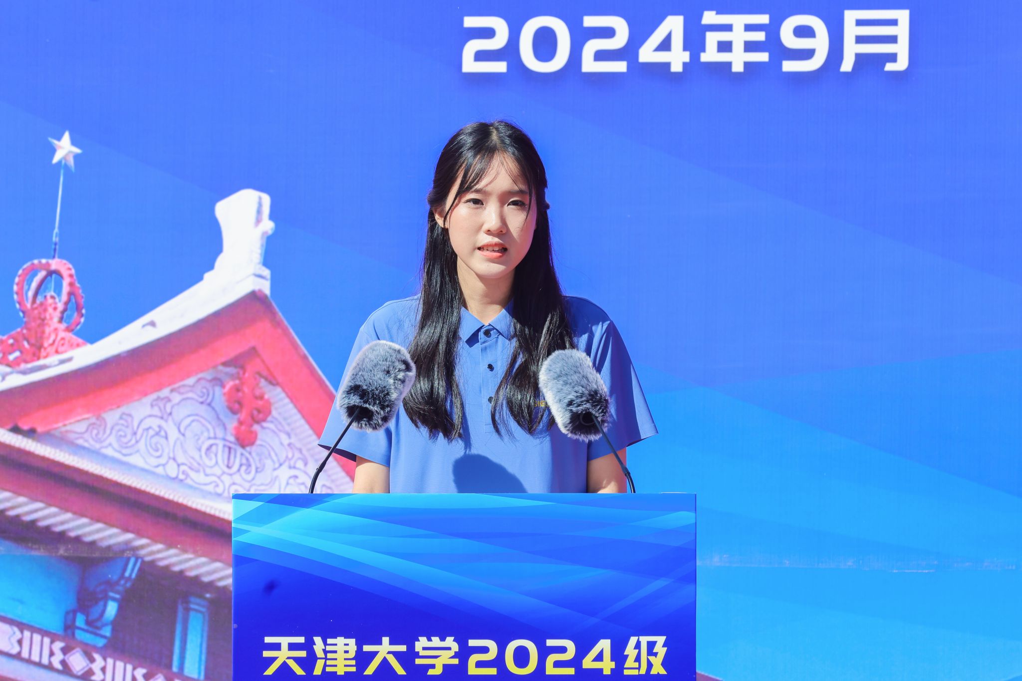 数学学院周紫檀、经管学部宋治冶、海洋科学与技术学院东盟专班陈圣熹分别作为本科生新生、研究生新生、留学生新生代表发言。三位同学分享了自己追逐梦想,圆梦天大的故事,与全体新生共勉一起开启这段绚丽多彩、意义非凡的人生新旅程。