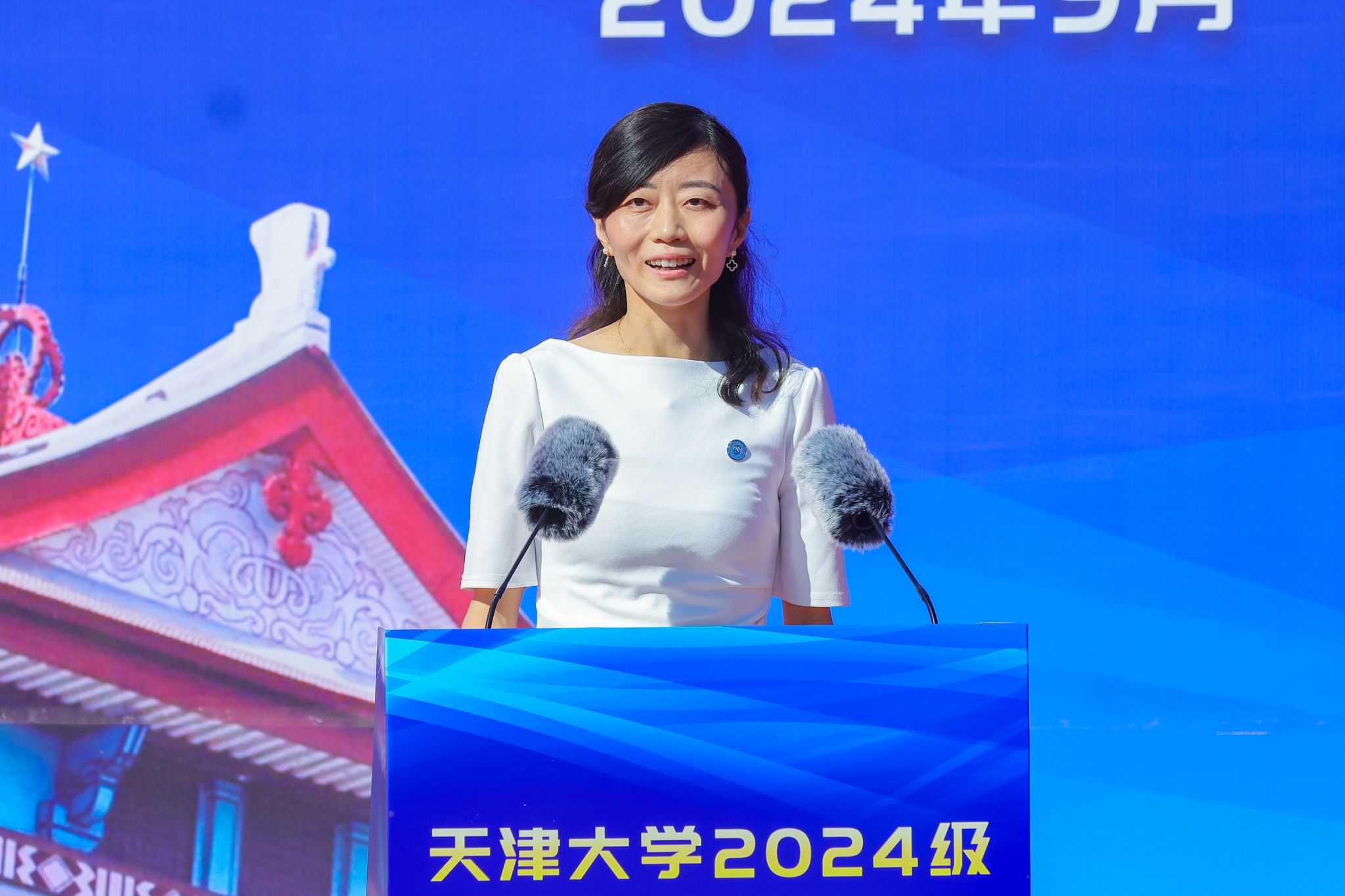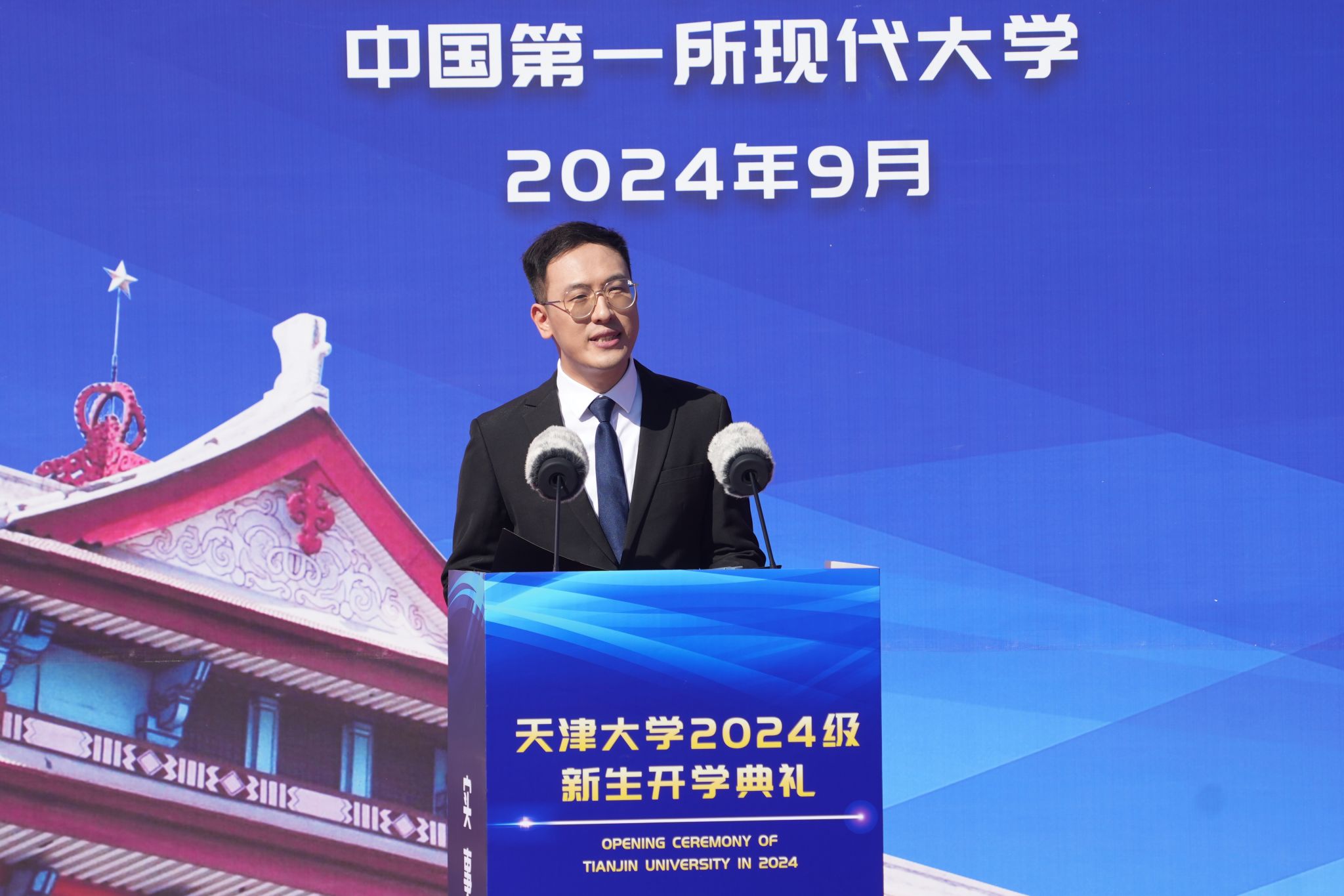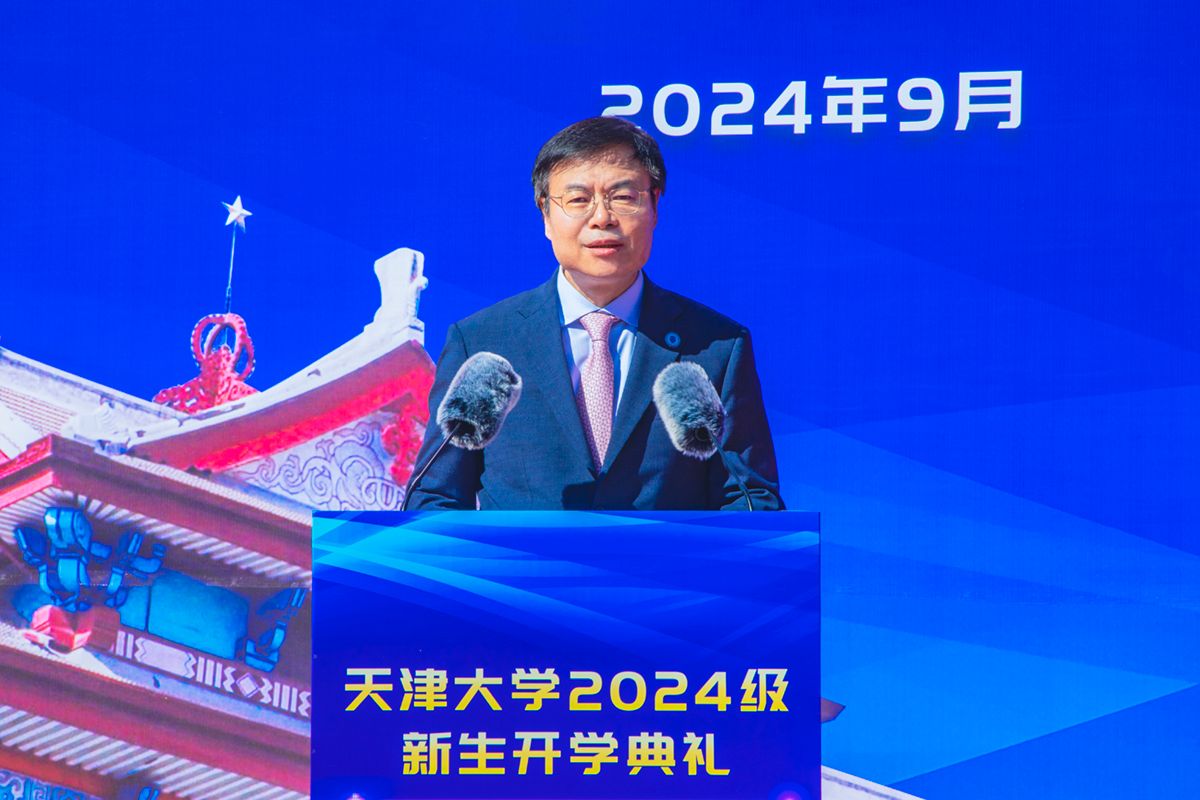 校党委书记杨贤金,中国工程院院士、校长金东寒,及全体在津校领导出席开学典礼。典礼由党委副书记韩庆华主持。