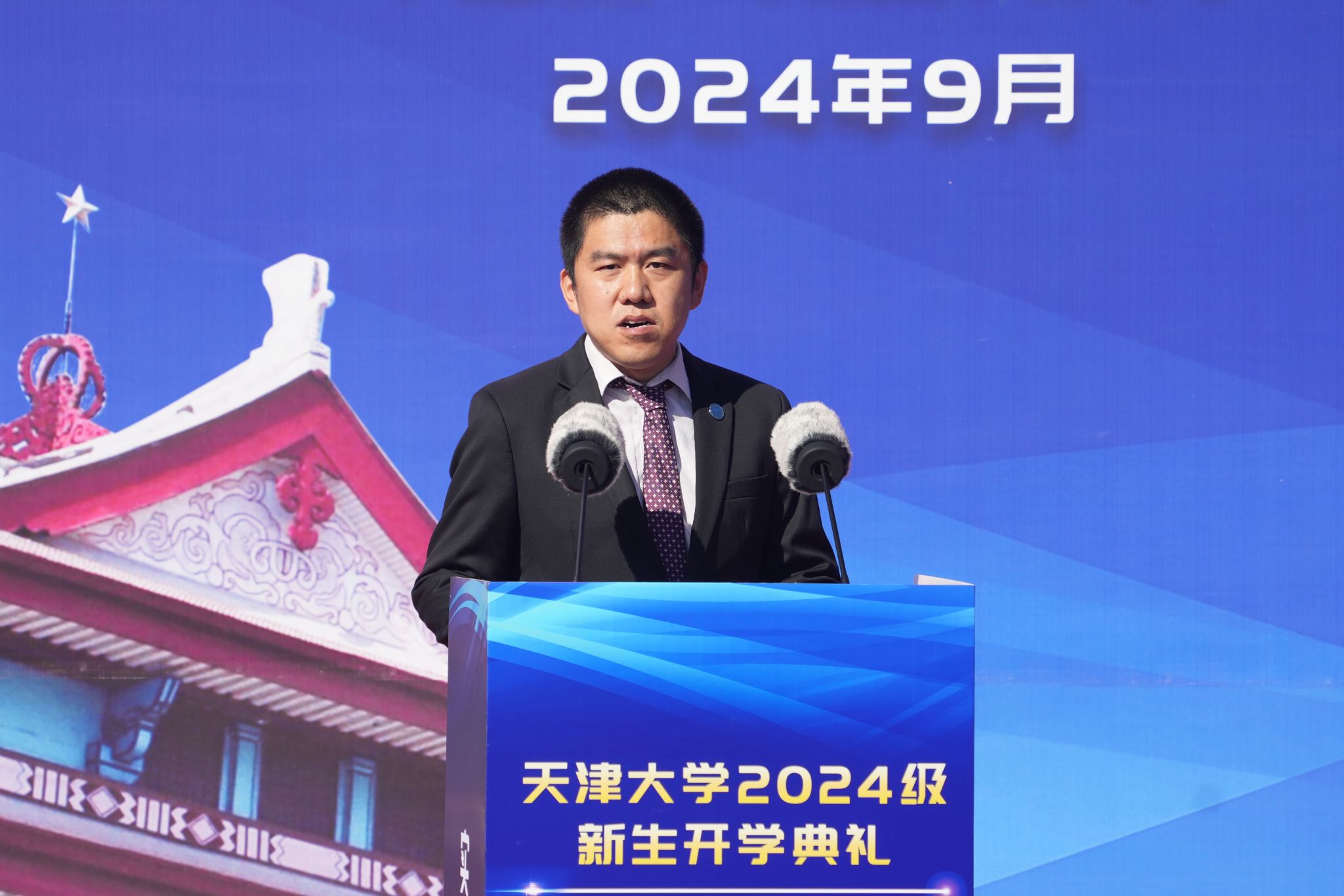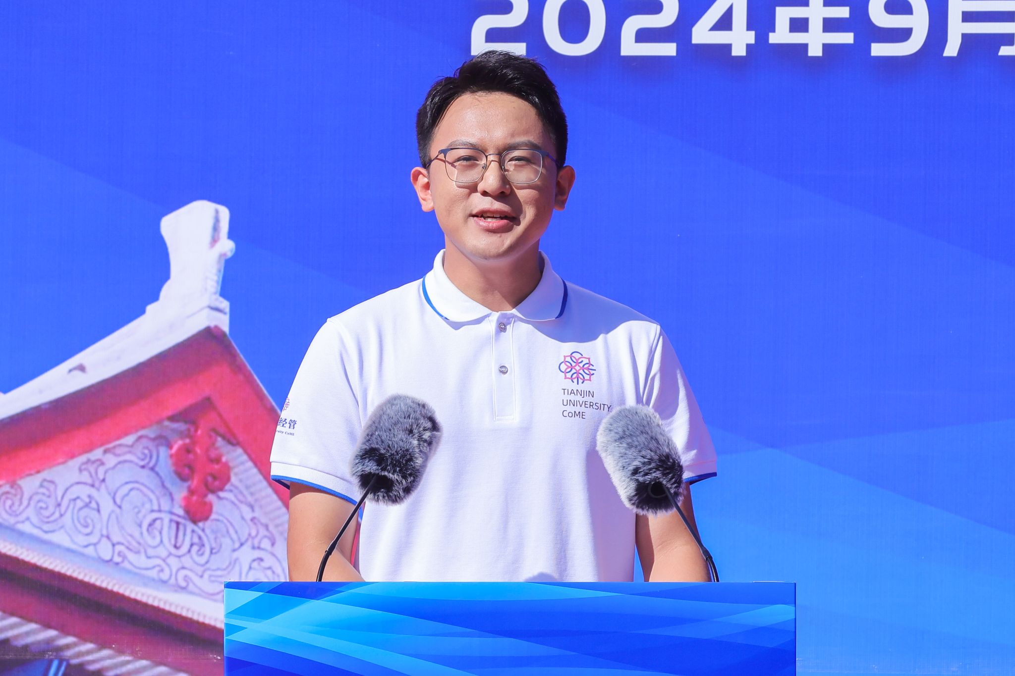 智算学部博士生吕永阳作为在校生代表分享了自己在天津大学学习、科研和投身社会实践的经历和获得的成长,勉励学弟学妹“实事求是地想,持之以恒地做,将小我融入大我,与祖国发展同频共振,为全面建成社会主义现代化强国贡献青春力量。”